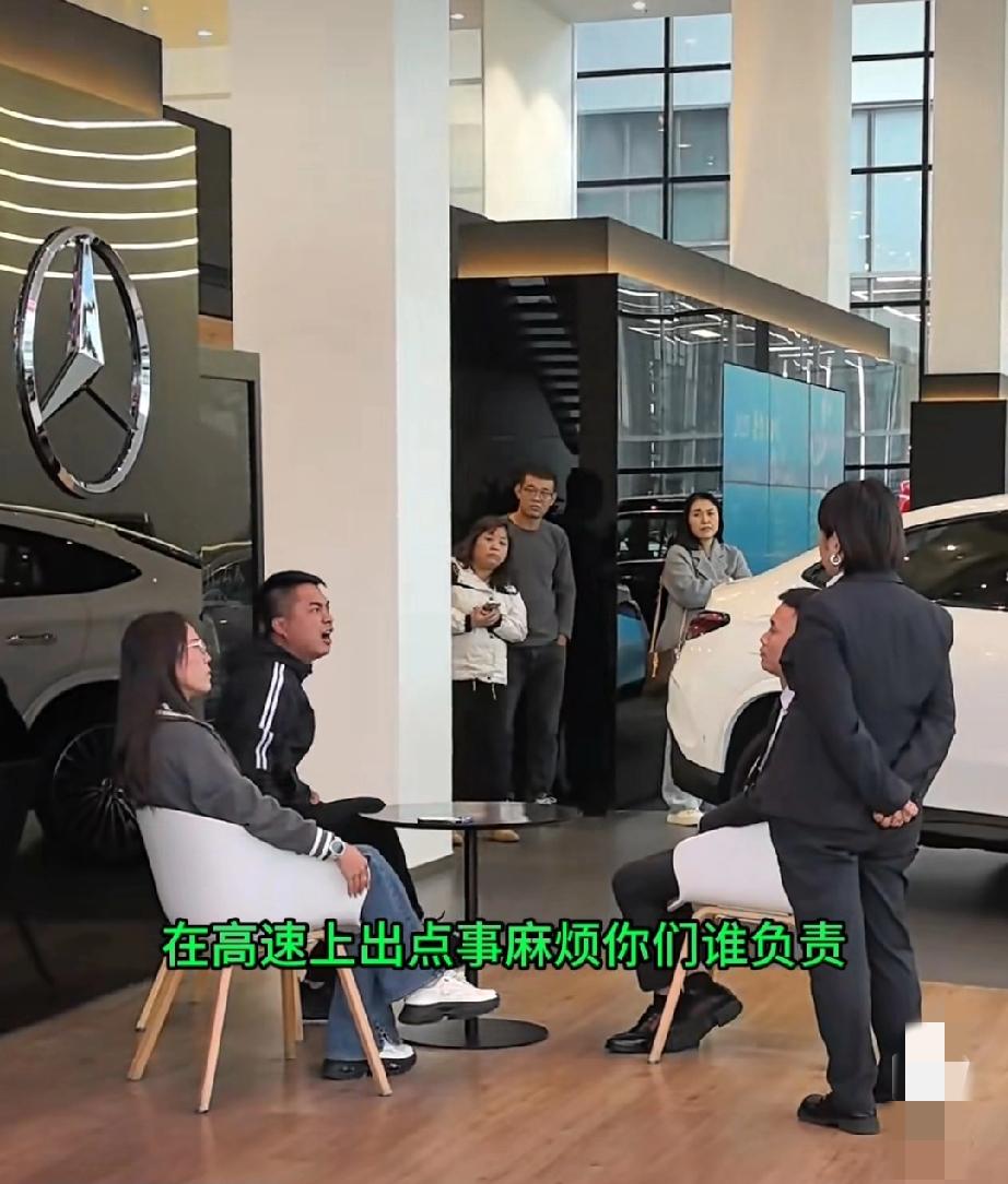 刚买的奔驰车100公里黑屏20次,夫妻俩到4S店讨要说法,看奔驰销售这态度,还真
