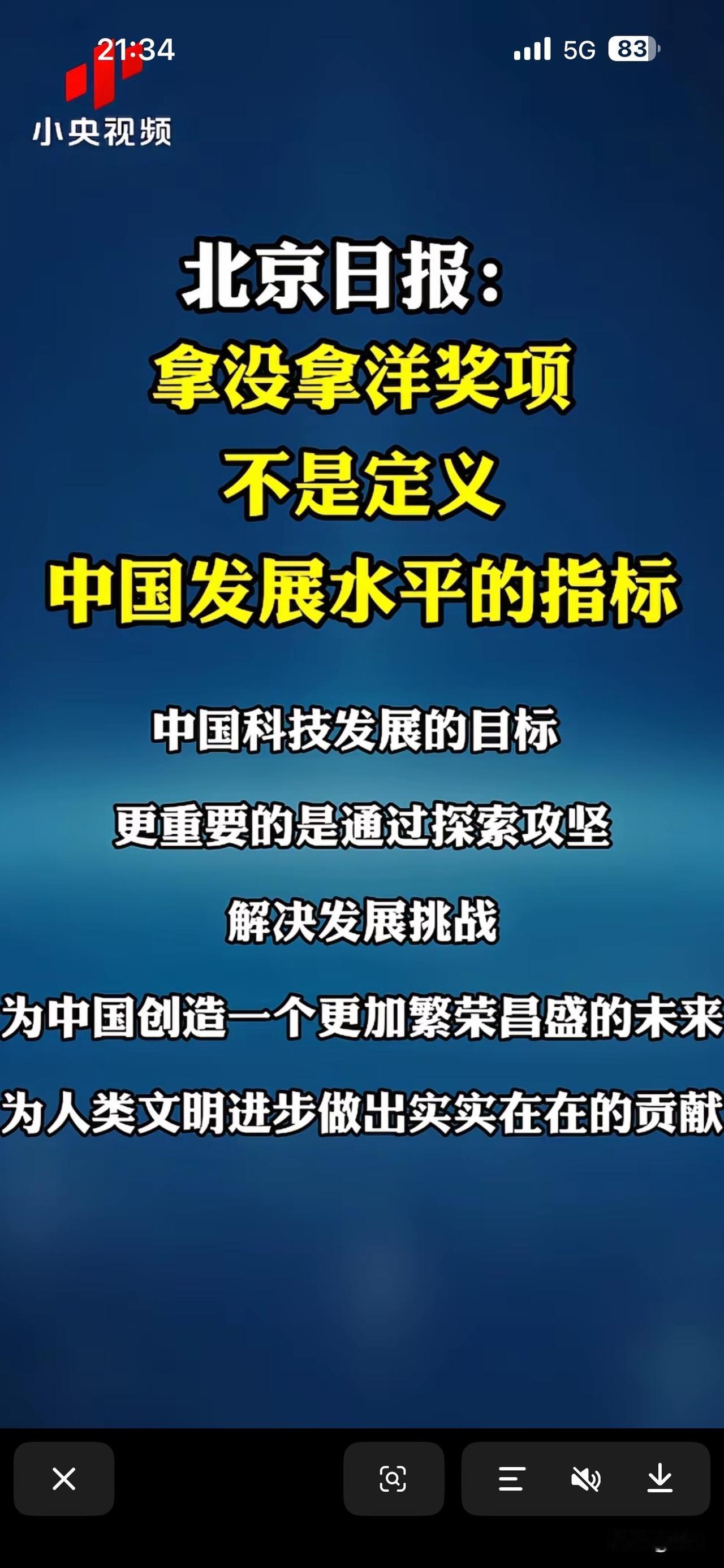 北京日报:拿没拿洋奖项,不是定义中国发展水平的指标 中国科技发展是不断提升广大人民群众的,服务于大众。针对此事,大家怎么看?