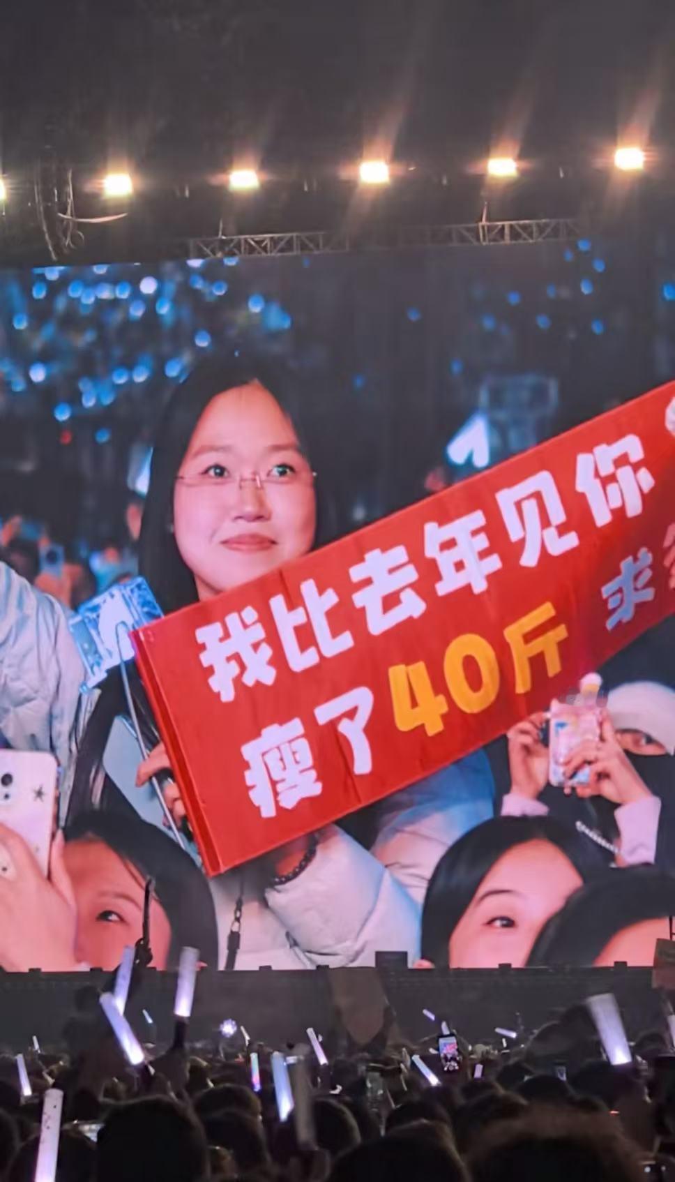 李荣浩歌迷一年减肥40斤 “我比去年见你瘦了40斤”[苦涩]李荣浩一眼看到手幅,还说要给这位粉丝签名,好幸运