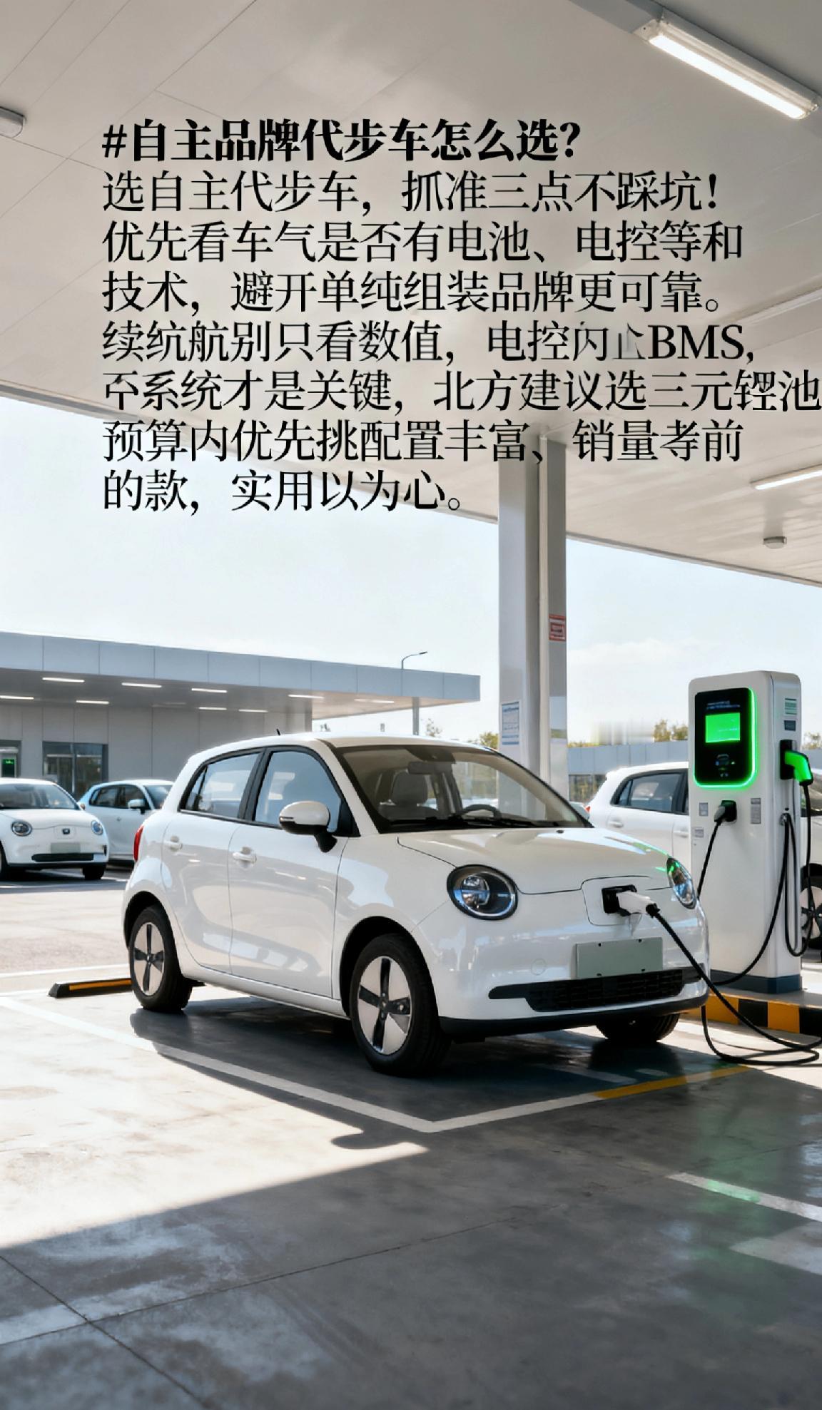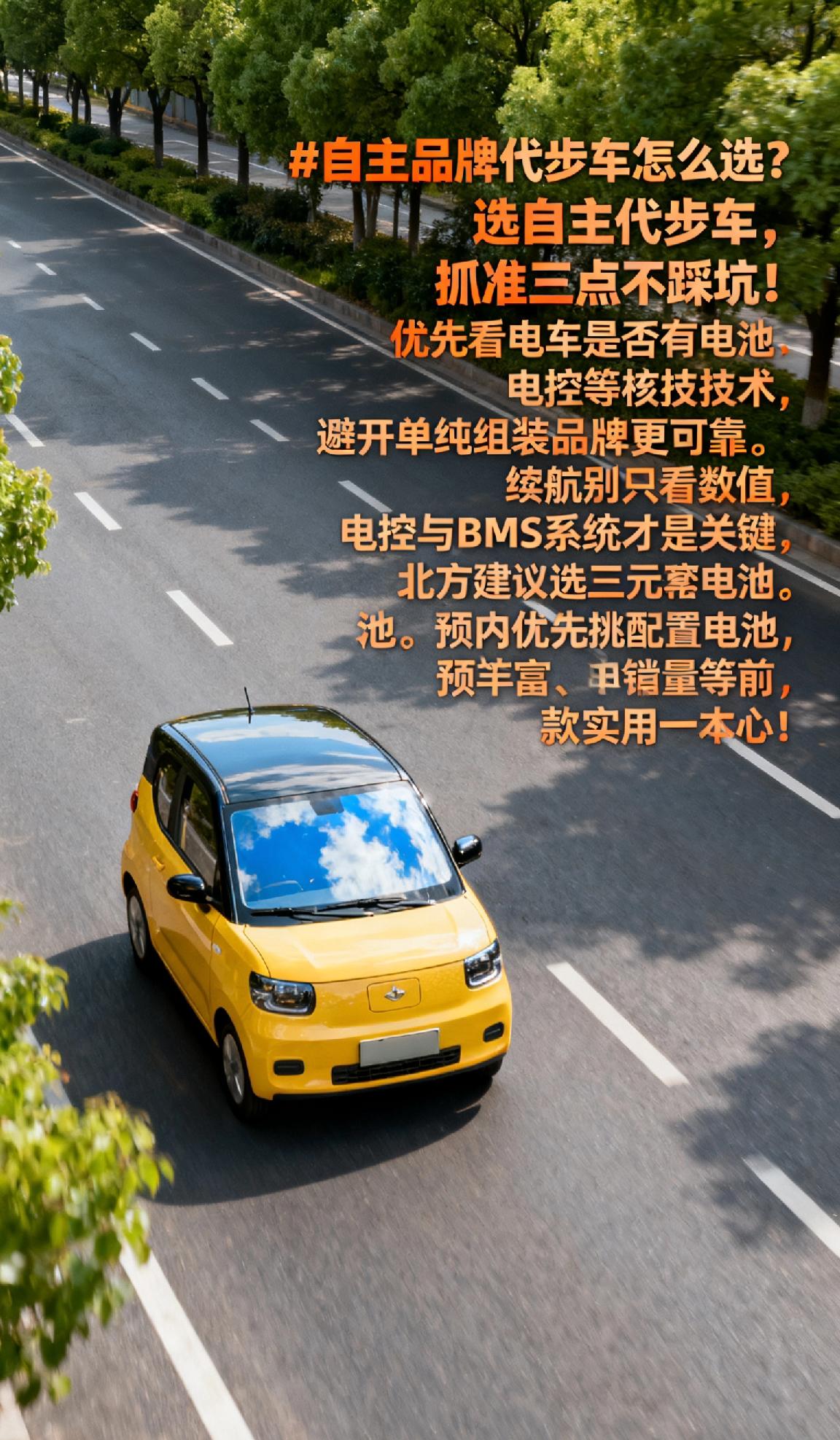 自主品牌代步车怎么选? 选自主代步车,抓准三点不踩坑!优先看车企是否有电池、电控等核心技术,避开单纯组装品牌更可靠。续航别只看数值,电控与BMS系统才是关键,北方建议选三元锂电池。预算内优先挑配置丰富、销量靠前的款,实用又省心!家用代步车 纯电代步车 锂电池版代步车 自主品牌电车