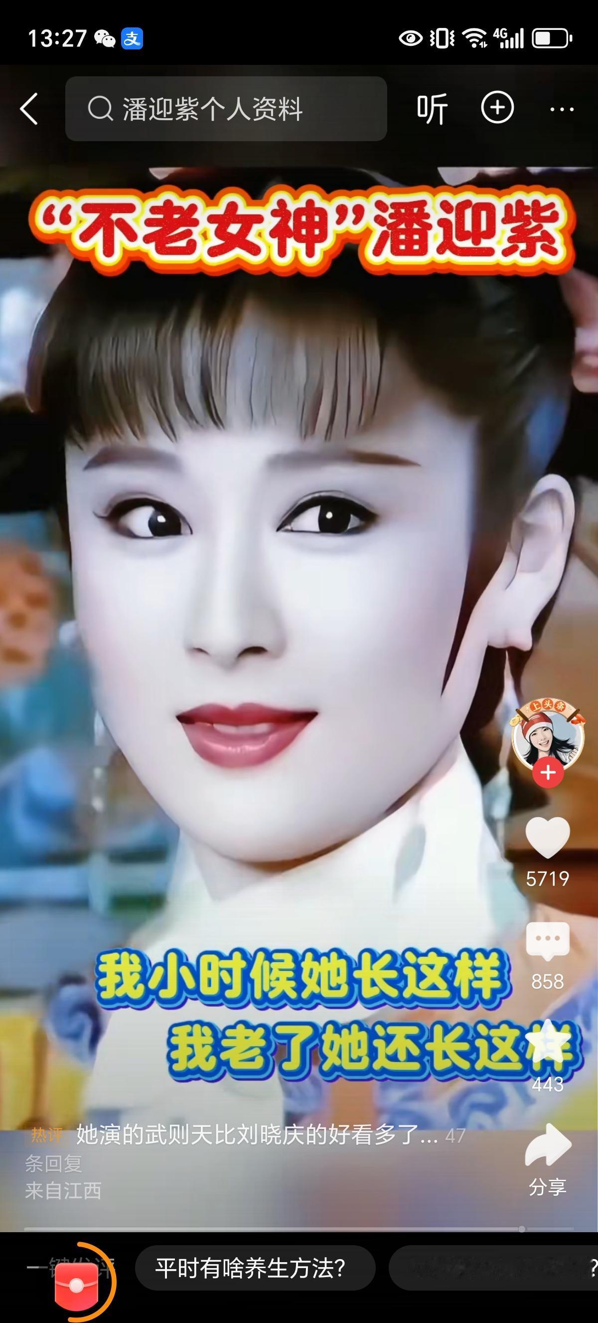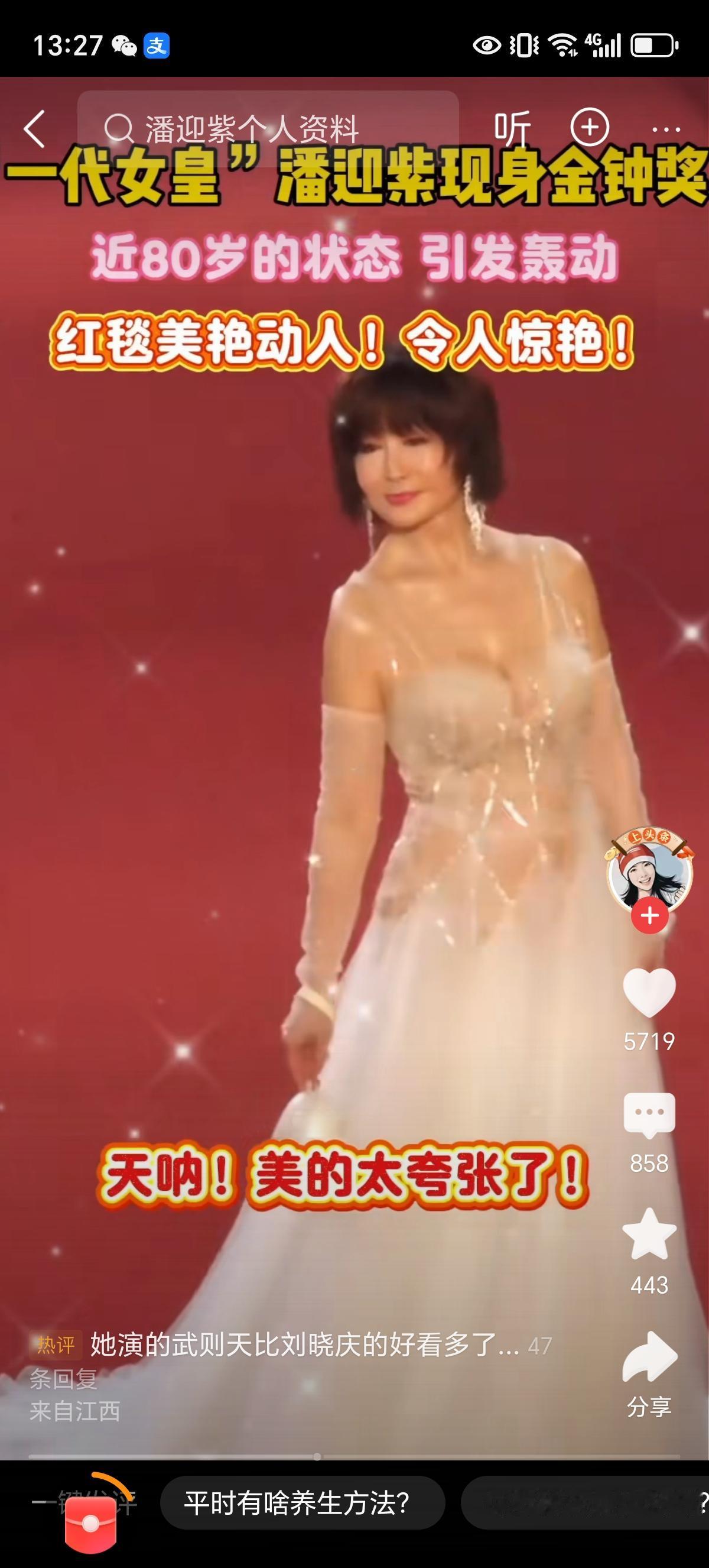 80岁的老奶奶穿着高跟鞋走路稳稳的,连个老年斑都没有,真是人比人得扔啊。我婆婆60多了,看着都没有她年轻漂亮,而且婆婆脸上的皱纹和老年斑明显,头发全花白了,还越来越少。这潘迎紫头发乌黑,还特别多,不服不行啊。 都80岁了,全身上下的皮肤看着滑溜溜紧绷绷的,看了好几遍了,该饱满的地方饱满,腰还是很细。看样子再活20年没问题吧!