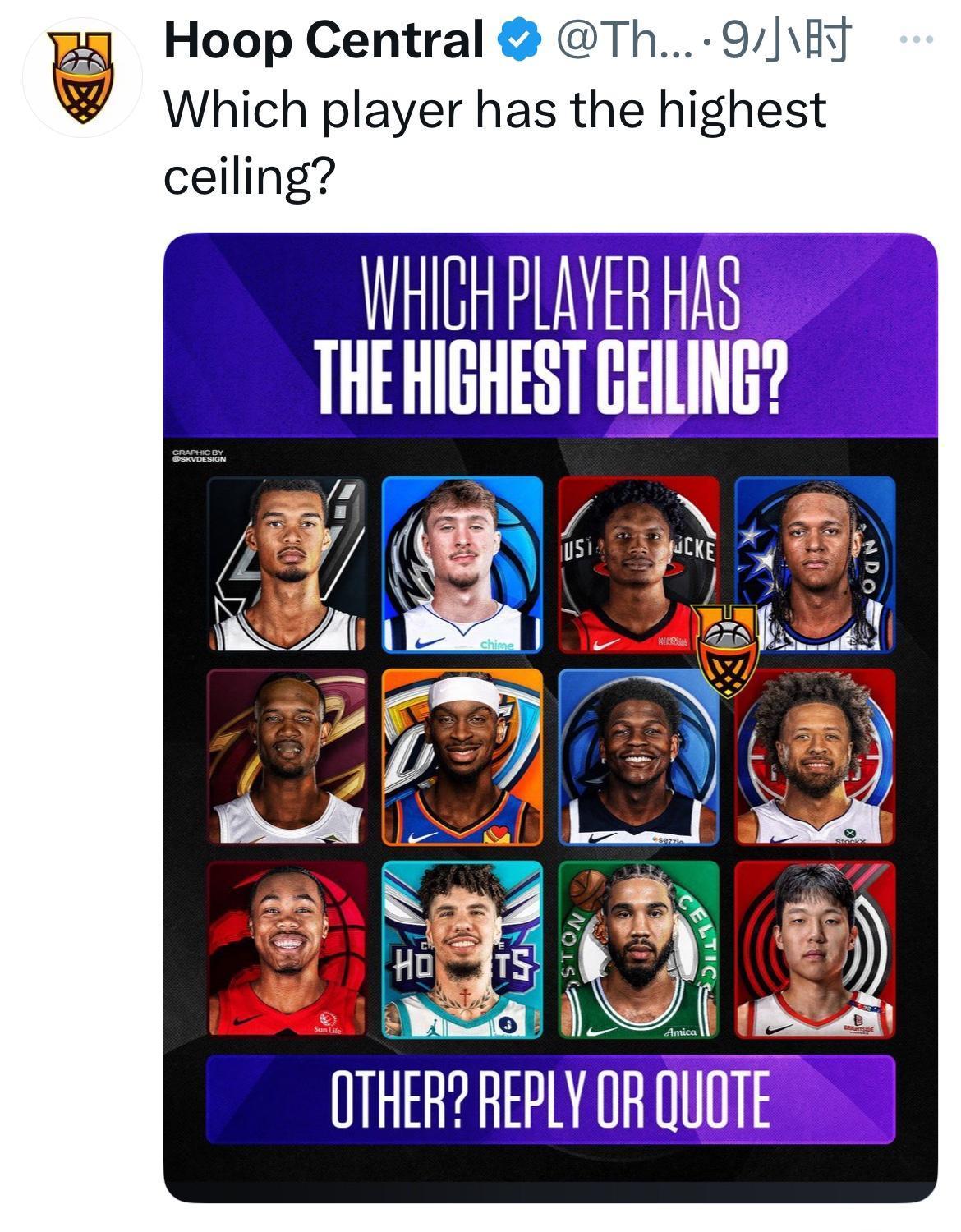 待遇很高!杨瀚森的大名赫然在列! 美媒发帖:哪位球员的上限最高? 给出的球星几乎都是各自球队的支柱,其中不乏多名状元。 瀚森加油啊,好好练功,知耻而后勇!