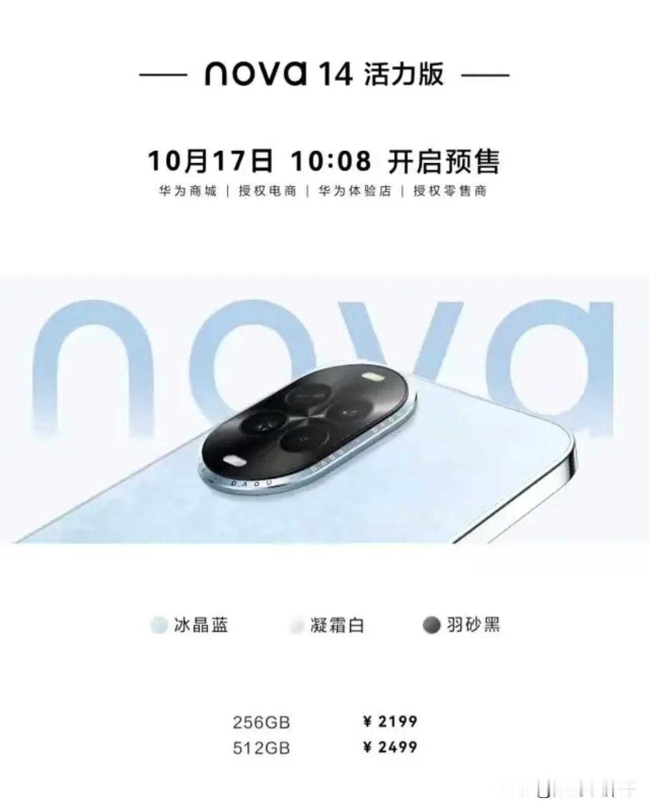 华为 nova 14 活力版上市,有两下子, 新后置 5000 万像素 RYYB 超感知镜头(传统手艺)、 预装鸿蒙 HarmonyOS 5.1 系统(华子家人手一个)、 支持 66W 超级快充(CBB了好多年了吧), 最刺激的是,无论是256G版本,还是512G版本,内存(RAM)大小都是12G。 是不是最近内存涨价太多,要控制成本[狗头] 当然,看到售价,这还是一款好手机。 起码,全部使用成熟技术,没坑。 Nova14