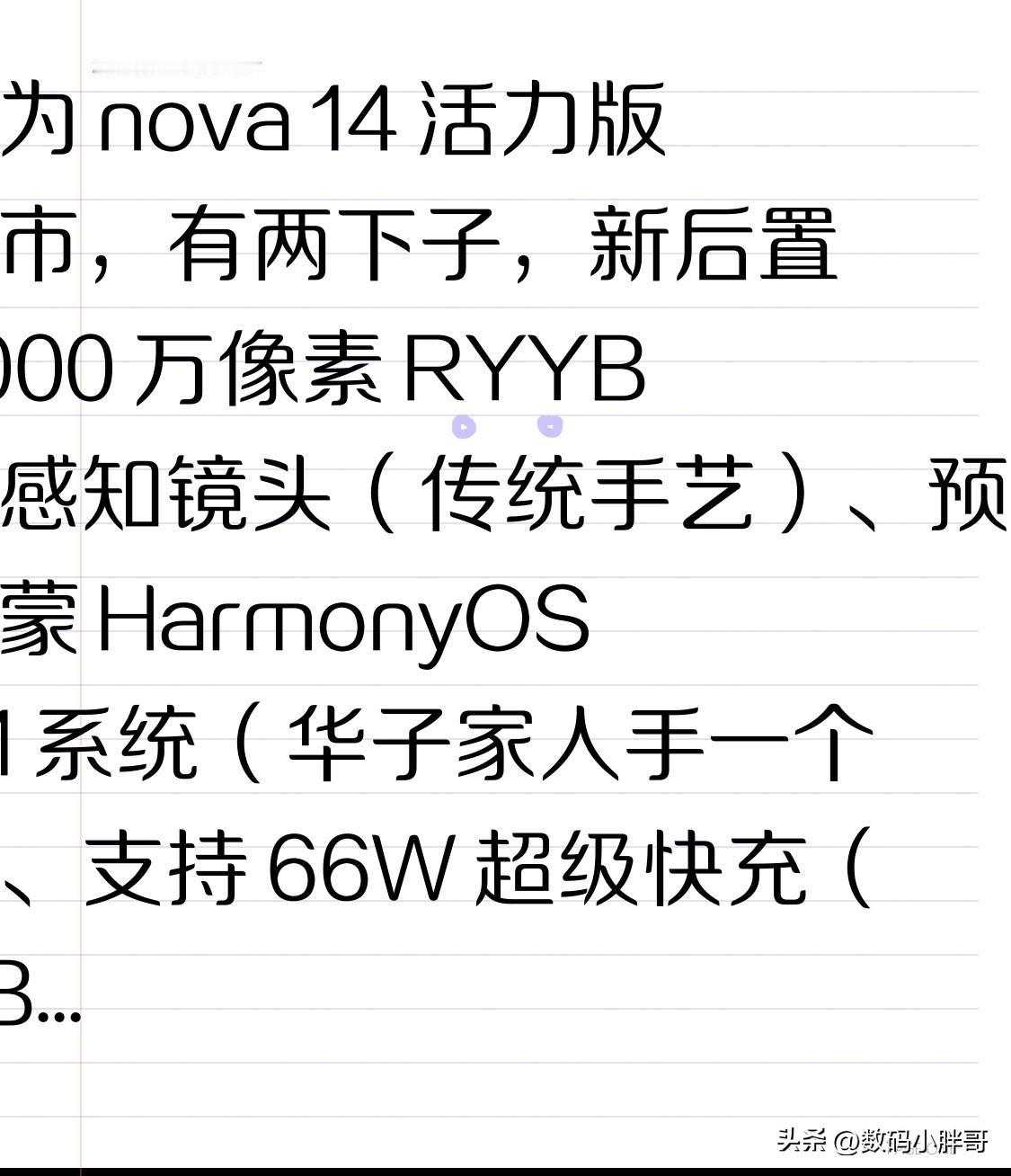 对比标准版,nova14活力版都砍了啥?1、砍了快充(从100W到66W)2、砍