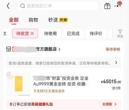 金价涨了,订单拦截了!!男子4.5万买金条遭"订单消失术",直接损失2000块?