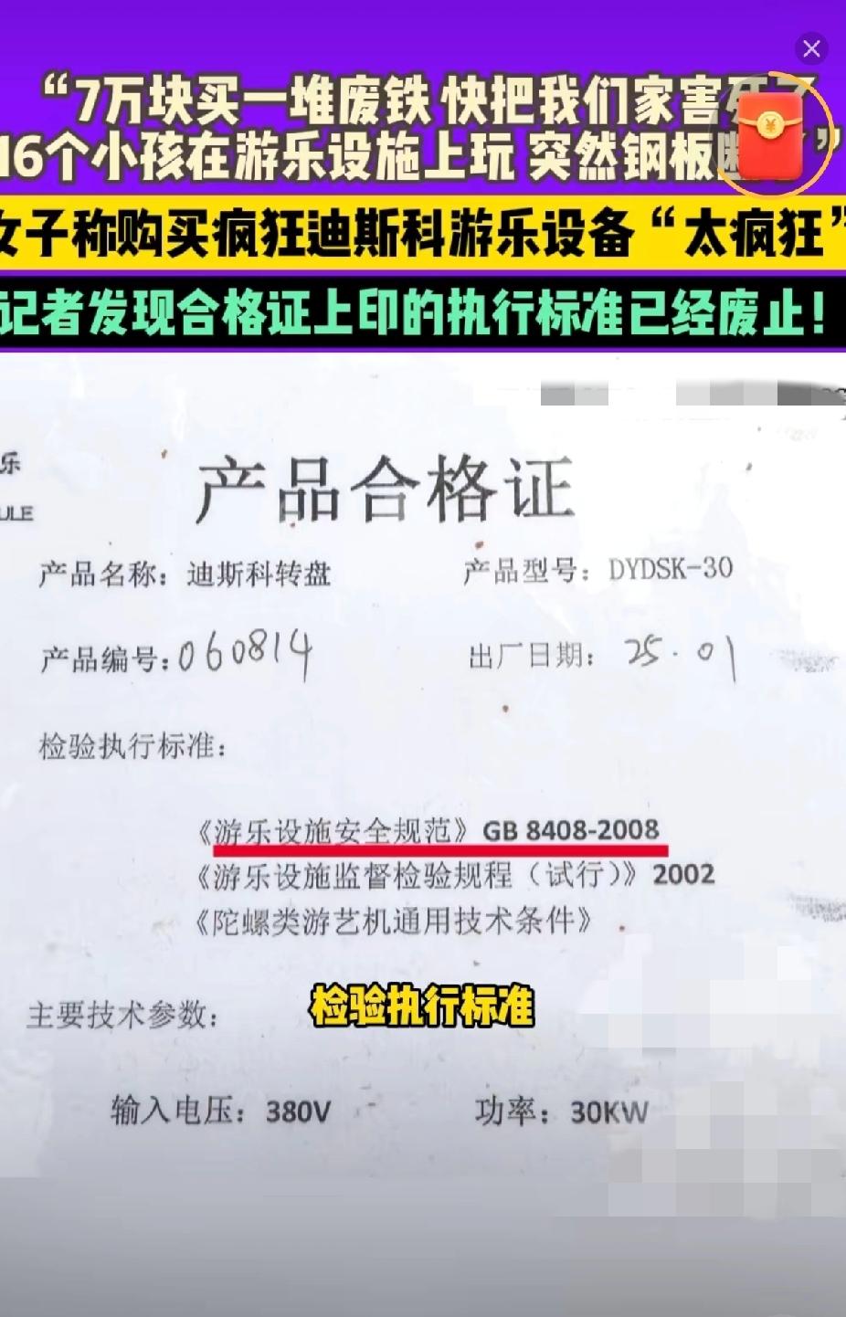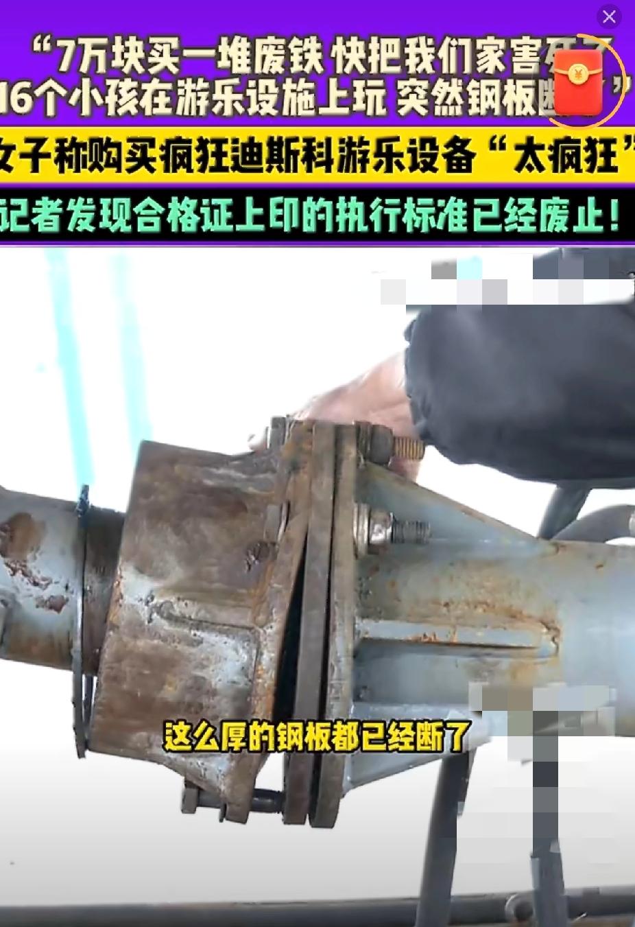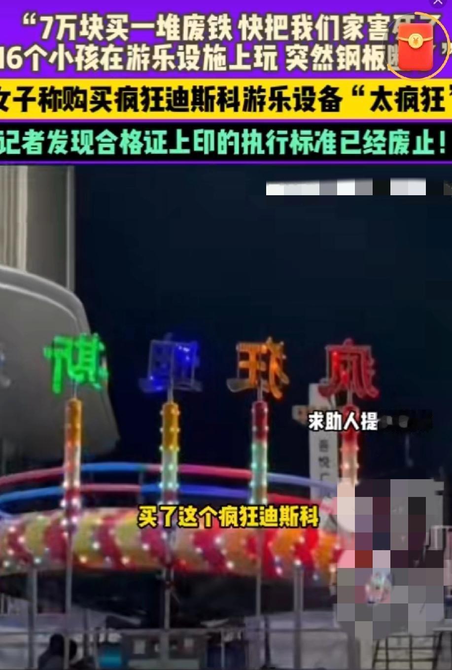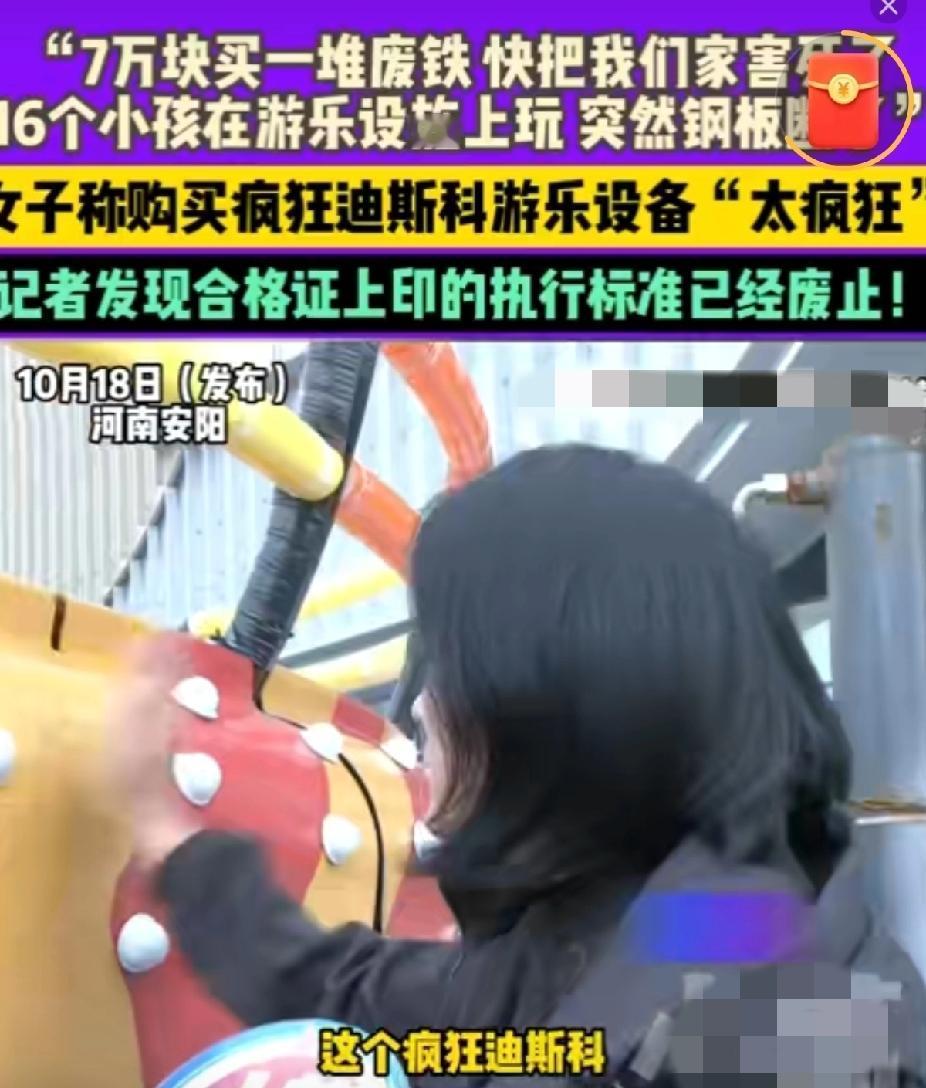 7万买个“夺命玩具”?河南女子哭诉太疯狂,这坑 创业人千万别踩! 家人们,现在搞副业也太容易踩雷了!河南安阳的冯女士最近就栽了大跟头,花7万买了台“疯狂迪斯科”游乐设施想搞亲子生意,结果不仅没赚钱,还差点出人命,直呼“这设备比名字还疯狂”! 你敢信吗?16个小孩正在上面玩呢,突然“咔嚓”一声巨响,设备的钢板直接断了,吓得家长们魂都飞了。更气人的是,这设备买回来四个月就小毛病不断,零件换了个遍,找厂家要说法,人家只甩来一句“找中间商评估”就想打发人。记者一查才发现,这设备的合格证上,执行标准全是早就废止的老规定,妥妥的“三无次品”! 其实冯女士的想法特能理解,现在亲子游市场火得发烫,2025年在线亲子度假市场规模都要冲3000亿了,乡镇县城的亲子乐园更是成了创业香饽饽 。 给想搞亲子创业的朋友提个醒:买设备先查“两证”——执行标准看现行GB 8408-2018,合格证必须有最新检验章;二手设备别光听卖家吹,一定要现场试机,最好找懂行的人陪同。 你们身边有人搞亲子创业踩过坑吗?见过哪些低成本又靠谱的亲子项目?评论区聊聊避坑经验,让想入行的朋友少走弯路!觉得有用的赶紧转存,创业可不能凭“一腔热血”~ 女子7万买游乐场设施太疯狂 亲子创业避坑指南