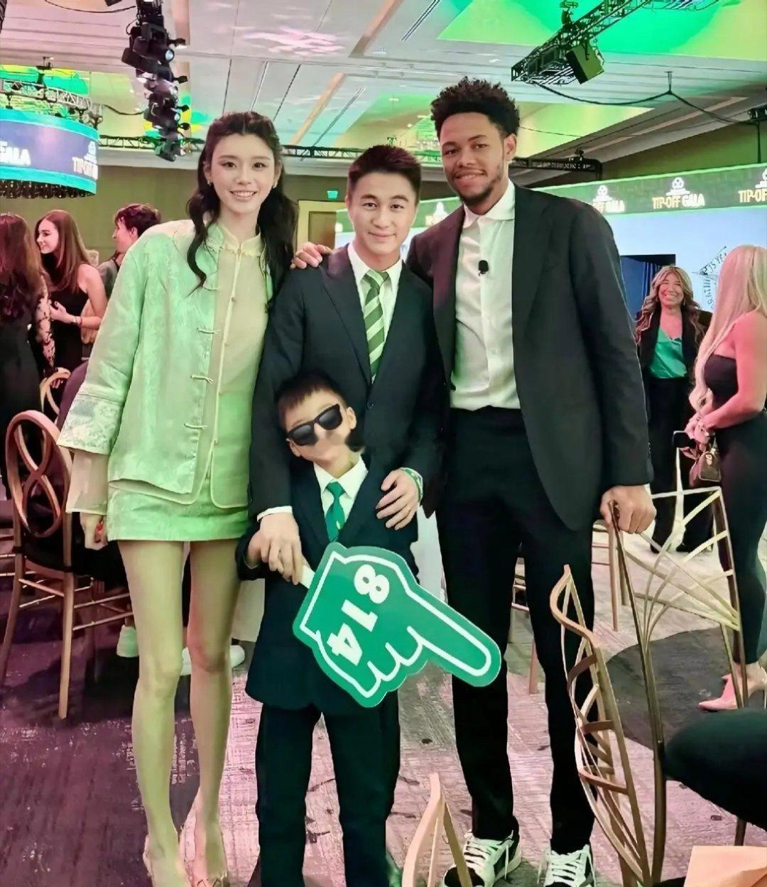 近日,何猷君带着老婆奚梦瑶和儿子何广燊出席基金会活动。活动现场,奚梦瑶一袭浅绿色新中式套装惊艳全场。上衣中式盘扣设计,温婉中尽显东方韵味,内搭肉色纱衣更添层次感,下身短裙恰到好处地露出她笔直修长的超模大长腿,搭配高跟鞋,178cm的她站在何猷君身边气场全开,却又将新中式的柔美与超模的气场融合得恰到好处。何猷君能有这样美丽又气质出众的妻子,真的是福气满满呀。
