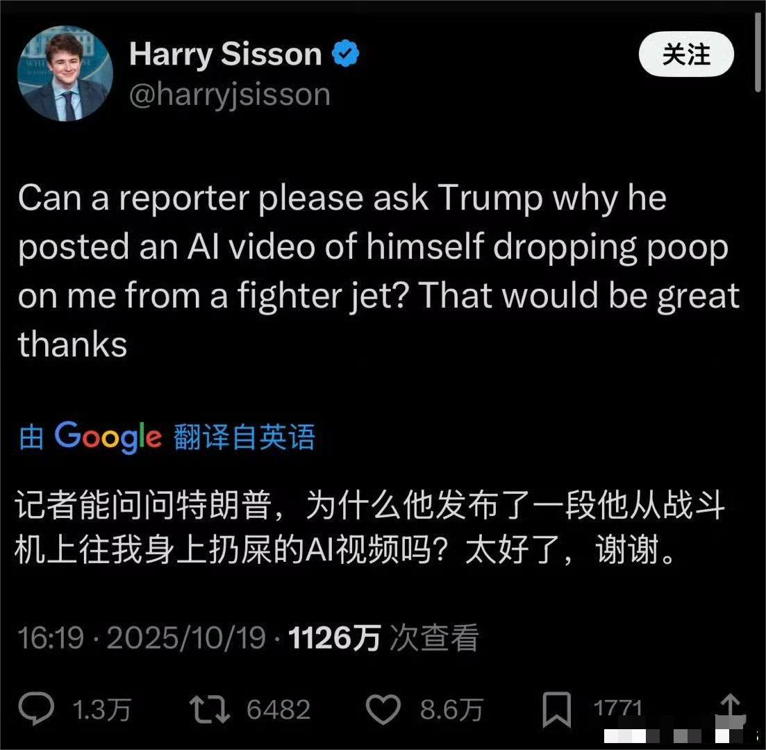 特朗普“开战机”用“屎”轰炸700万人,放言要当总统超过1亿年 日前,全美近3000座城镇、700万民众爆发了数十年一遇的超大规模抗议集会。愤怒的人群涌上街头,密不透风,他们打着“不要国王”的口号,表达对特朗普政策的不满,包括暴力打击移民、强征关税等。美国爆发全国性示威 700万人参与 但身为美国总统,特朗普不仅完全无视民众的意见,反而用自己的方式与700万人为仇作对。据报道,在全美抗议集会的当晚,特朗普在社媒上发布了一段用AI制作的视频,画面中,特朗普头顶王冠驾驶F-18战机,在《壮志凌云》主题曲的伴奏下飞越纽约,从空中向地面人群倾泻“含水量较高的粪便”。 值得一提的是,被“屎倒淋头”的人群是来自于现实场景,比如第一个被泼粪的人是23岁的自由派网红哈里·西森,他因批评特朗普而遭受MAGA支持者攻击。他发帖请求记者问问特朗普,为什么视频里要往他身上“扔屎”? 此外,特朗普继续发视频恶心抗议活动,表示自己要当总统当到超过1亿年直到永远。此类视频特朗普还发布、转发了很多,目前的白宫政治是如此疯癫,让人目瞪口呆。看起来,特朗普并不在意被称为“国王”,反而很享受王冠带来的荣誉和权力。而且,目前的抗议活动虽然规模很大,但是整体偏于平和,并没有给到特朗普政府足够的压力,特朗普用AI视频羞辱抗议者,这就是最大的蔑视。