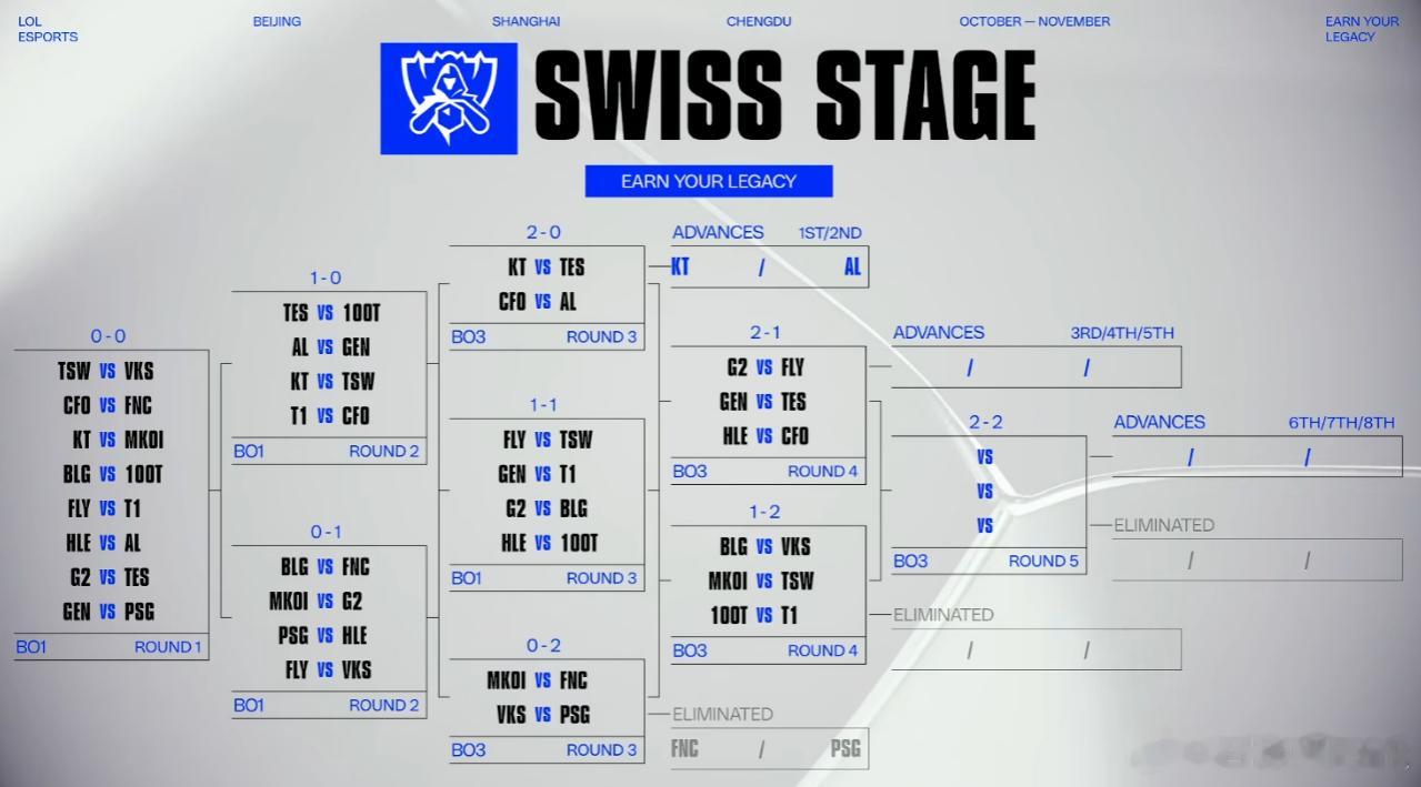 休赛两天,10月24号打完进行S15瑞士轮第5轮抽签,六支2-2分组的队伍迎来生