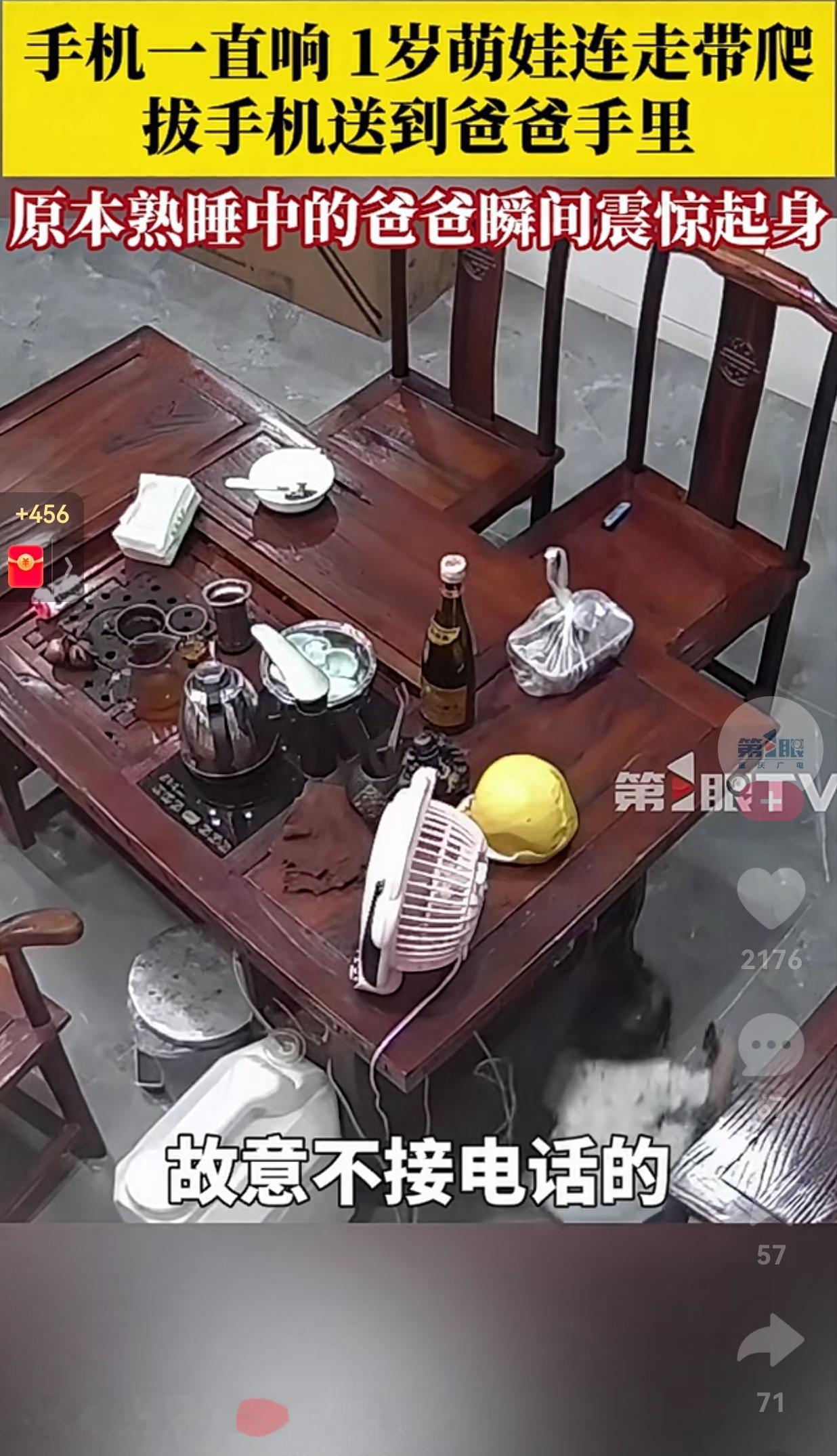 太聪明了!手机在充电,突然手机一直在响,妈妈在洗碗没有听见,爸爸在睡午觉,只有宝