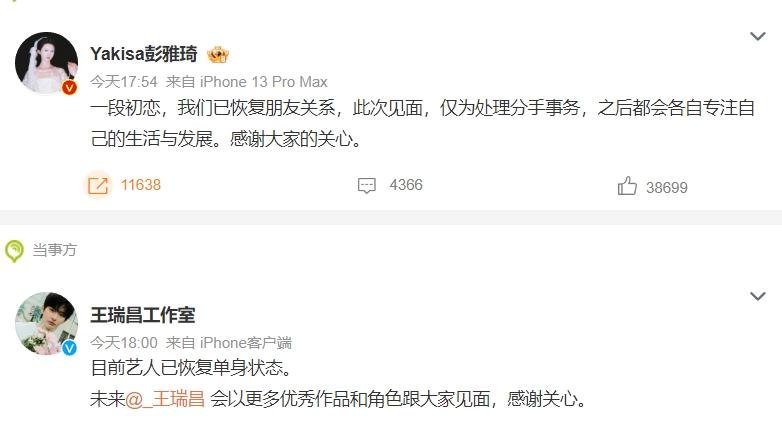 娱乐圈又一对见光死 王瑞昌和彭雅琦被曝光恋情,俩人刚被拍到就火速回应已分手,此次见面也是在商量分手事宜,不过俩人都不火,所以也翻不出什么水花,只有当红和大火的艺人恋爱才有可能影响资源,小艺人基本不会。