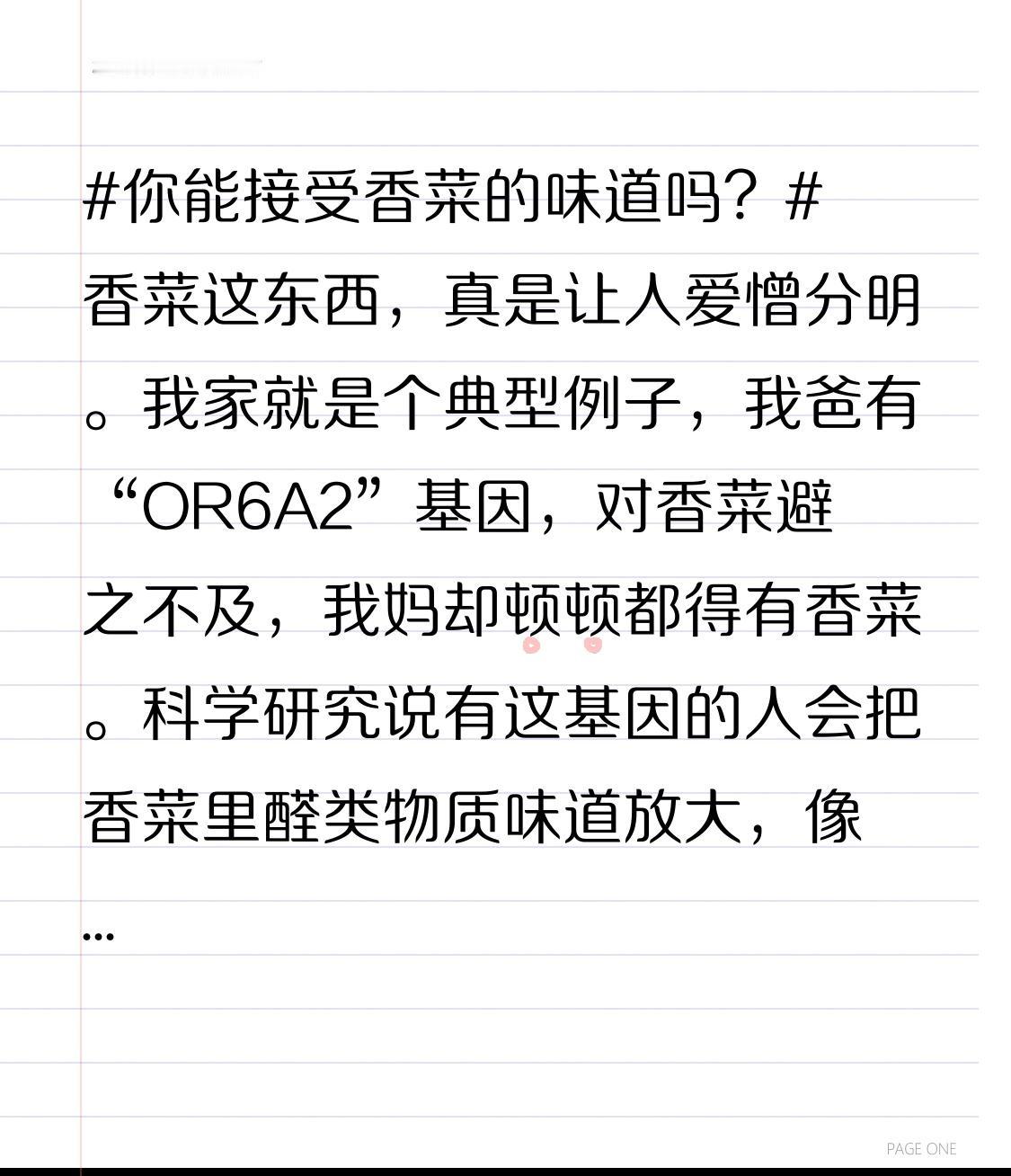 香菜这东西,真是让人爱憎分明。我家就是个典型例子,我爸有“OR6A2”基因,对香