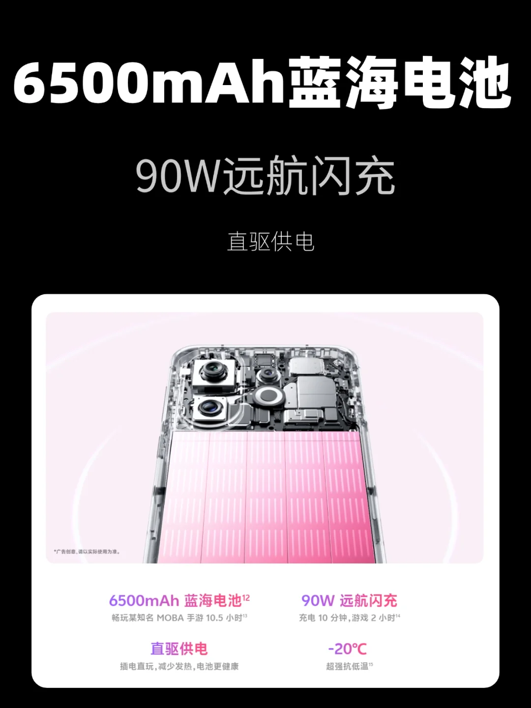 电池直接给到了6500mah,搭配90w闪充,用一天完全没焦虑,性能也是旗舰级别,大日常使用丝滑流畅,游戏也是畅玩。