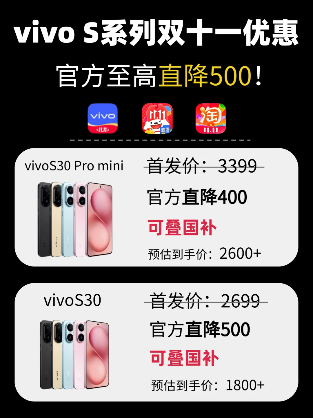 更有vivo S30官方至高直降500元,国补到手1869起!