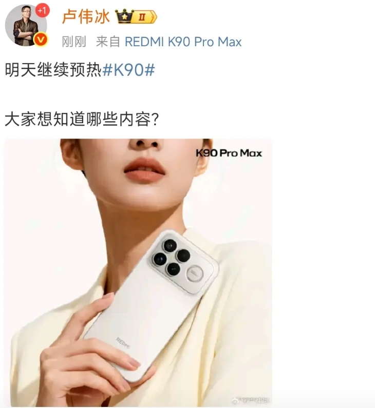 来了,就在刚刚,卢伟冰微博发文#k90#系列明天又要继续预热了,问大家想知道哪些内容?
