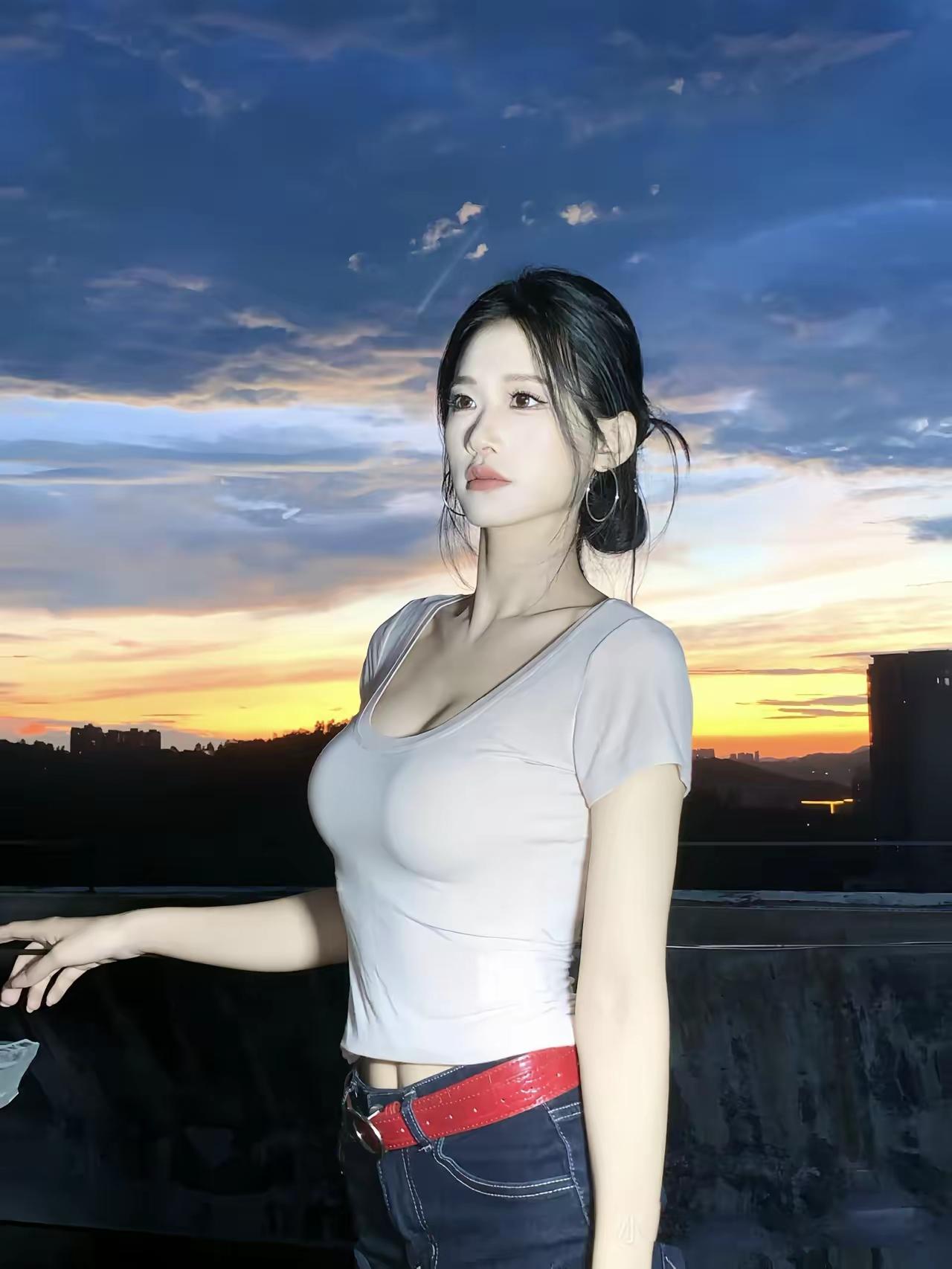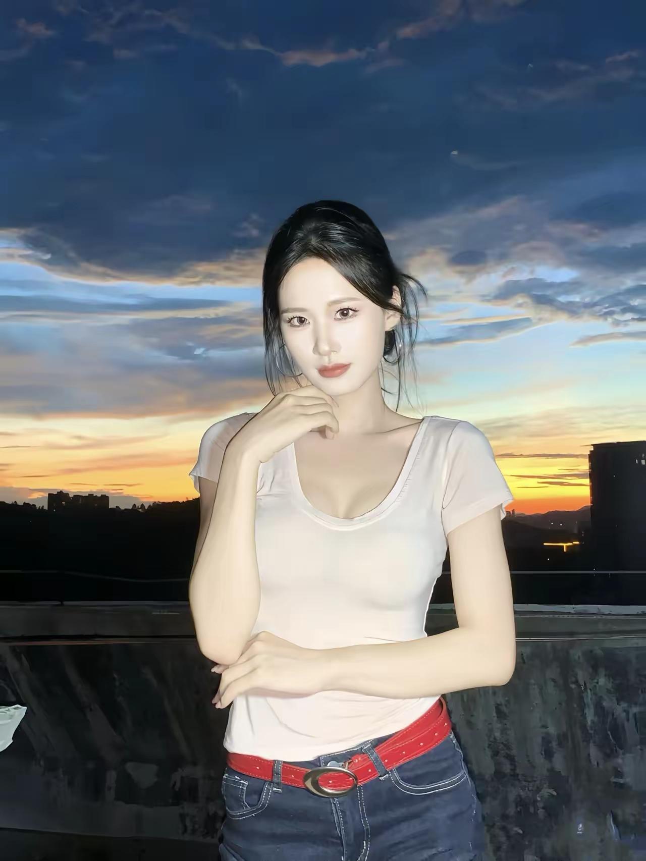户外美景在山巅之上山高云欲低,峰上丽人立。见此身姿俏,美融天地奇。
