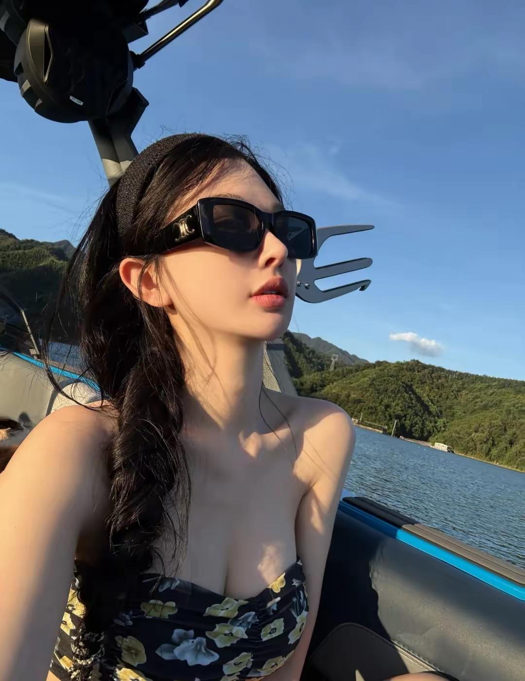 夏日湖畔,阳光下的甜美自拍🌞💖