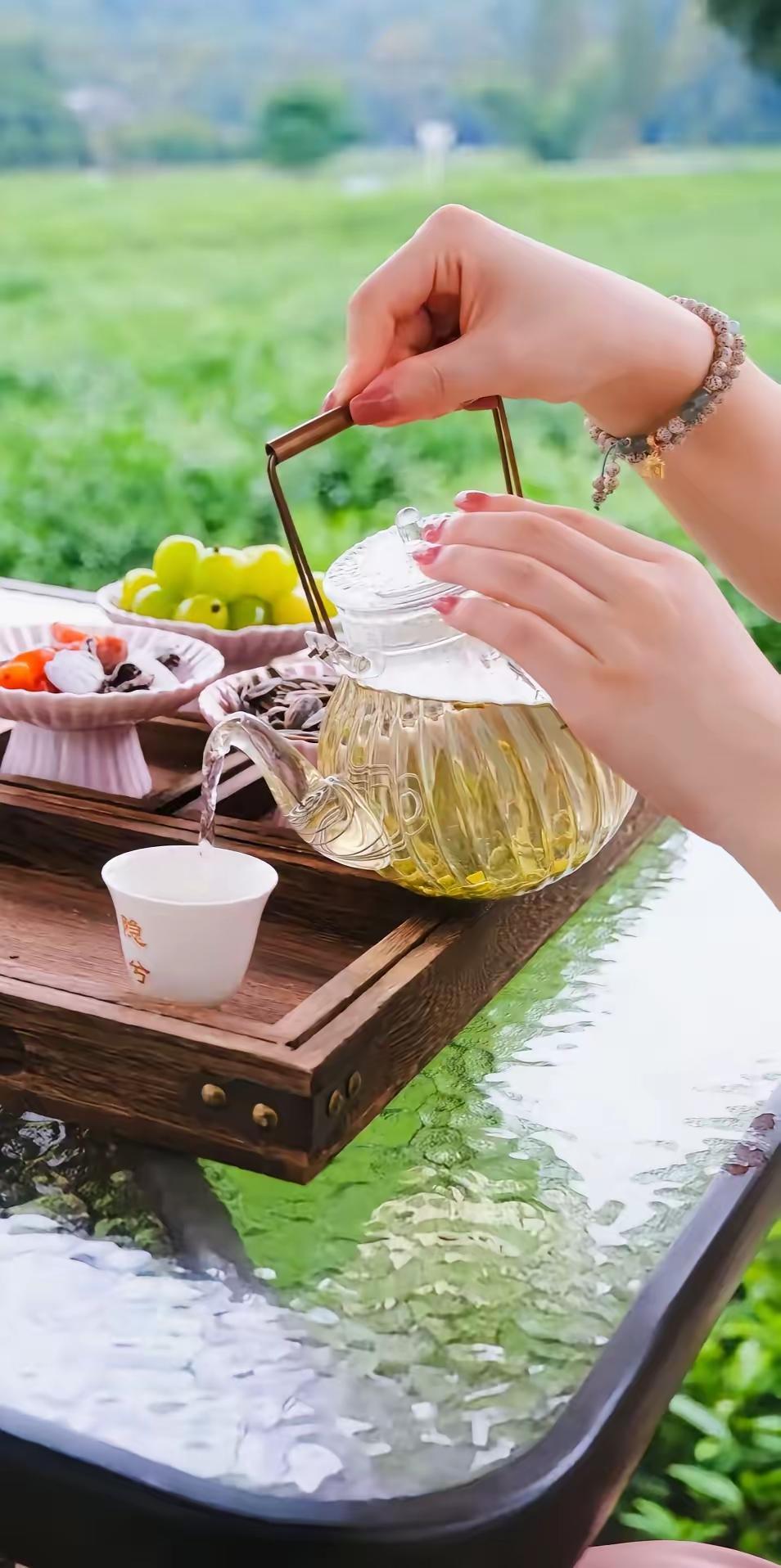 《茶园晨景》 晓色初开映碧畴,茶园新翠韵悠悠。 枝摇宿露珍珠落,叶舞晨风翡翠流