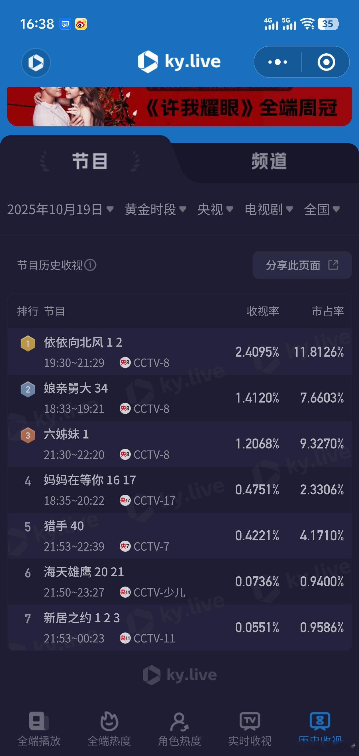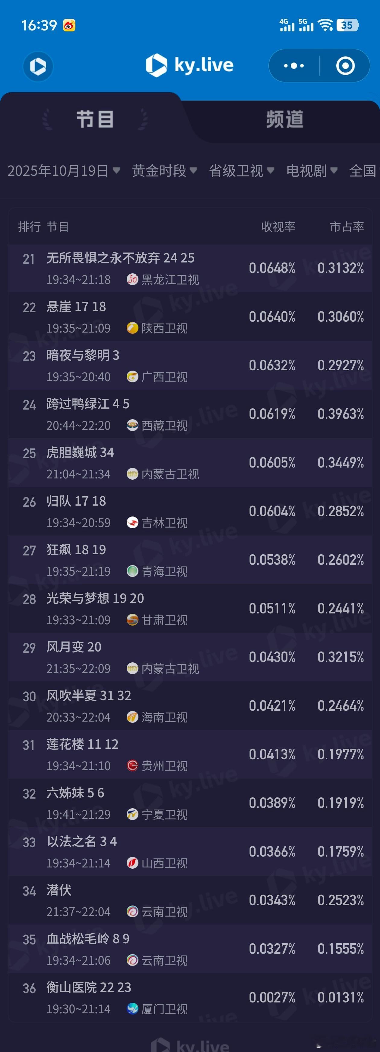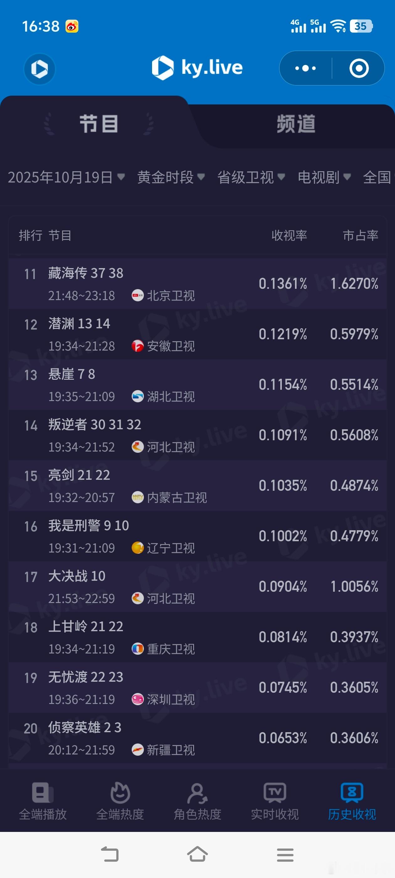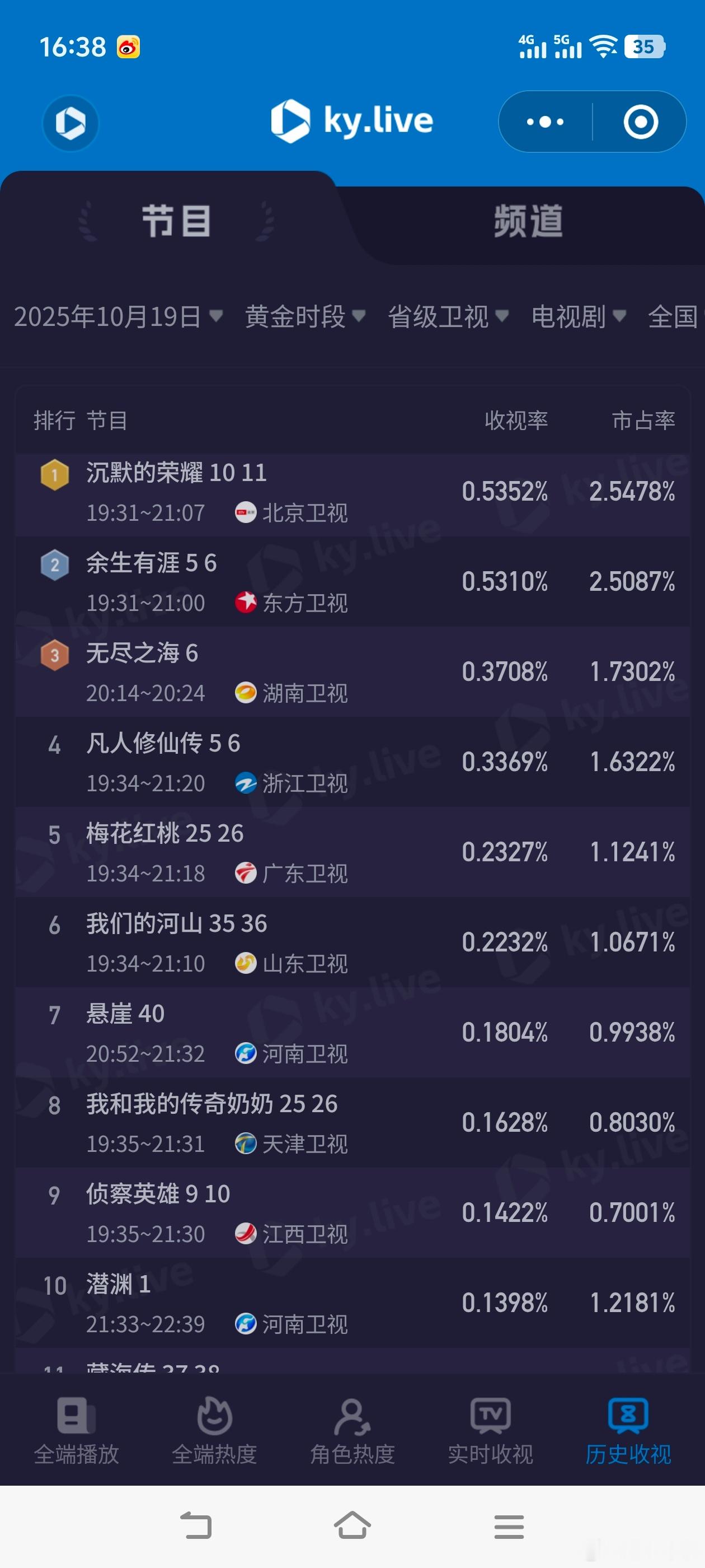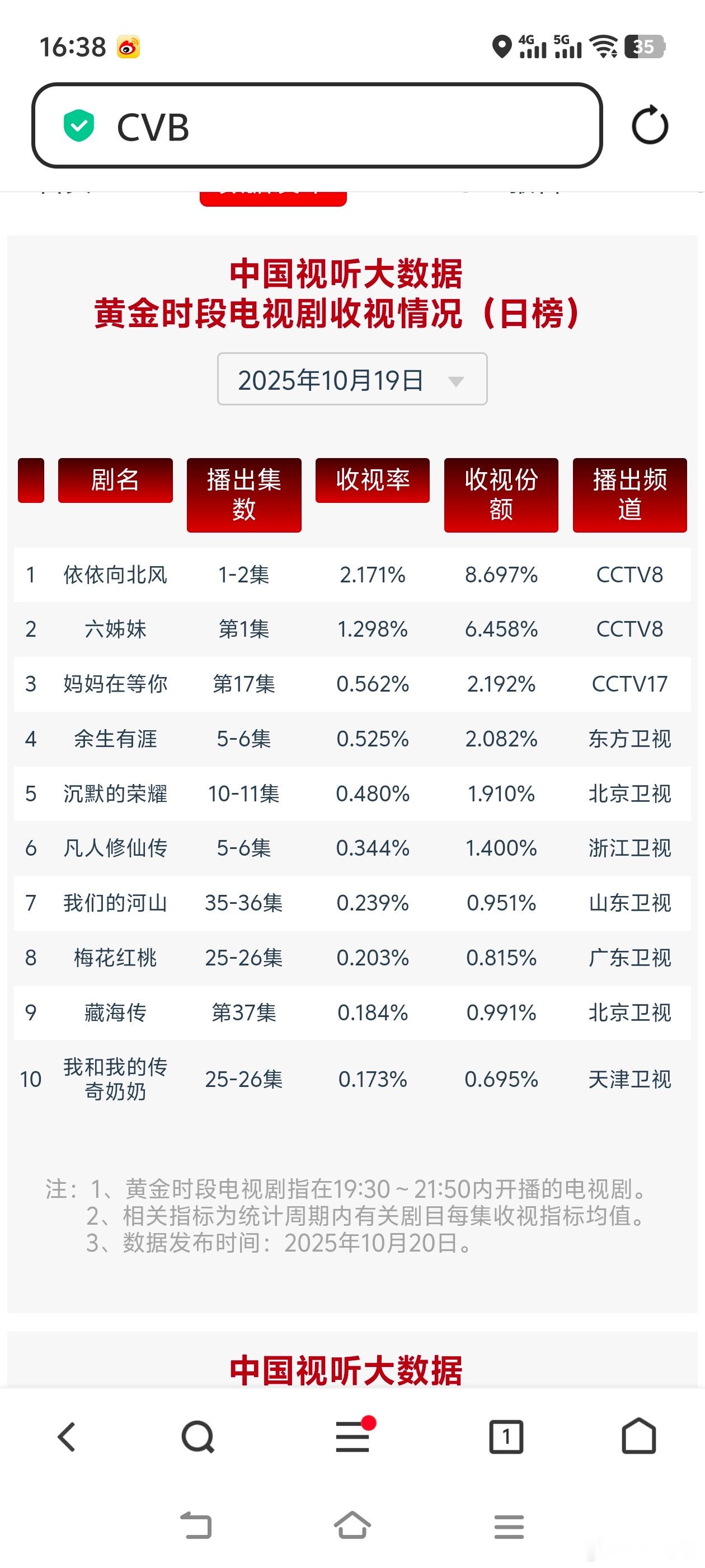 10月19日cvb收视日报![鼓掌][鼓掌][鼓掌]卫视大涨!