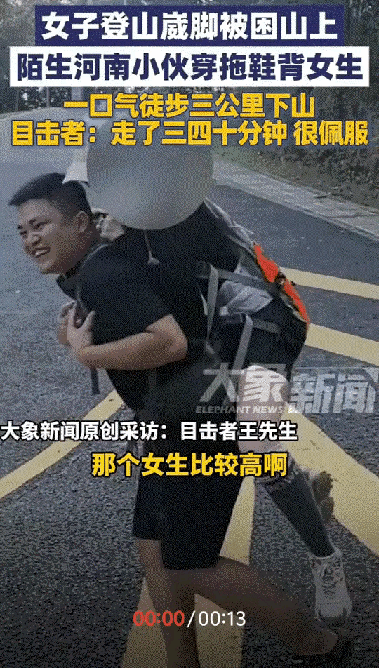 广州登山道上这幕真的看一次暖一次!一米七女生崴脚被困,旁人想帮忙却架不住姑娘个子高,正僵在那儿的时候,穿拖鞋的河南小伙直接掏出背带,二话不说把人背上就走,三公里山路硬是没歇脚,四十分钟就送到能打车的地方。 最戳我的不是他力气大,是他起背时全程没碰女生一下!换成别人可能早慌手慌脚,他却把分寸感拿捏得死死的,连网友都喊着“这人品比黄金还贵”。别说是刚好有背带的缘分,换成没担当的人,就算有装备也未必愿意搭把手。 现在太多人遇到事先想着避嫌,可这位小伙却用行动告诉我们,善良和分寸感根本不冲突。要是你在山里遇到这种情况,会像小伙一样主动帮忙吗?或者换作是你被救,之后会怎么跟小伙表达感谢呀?