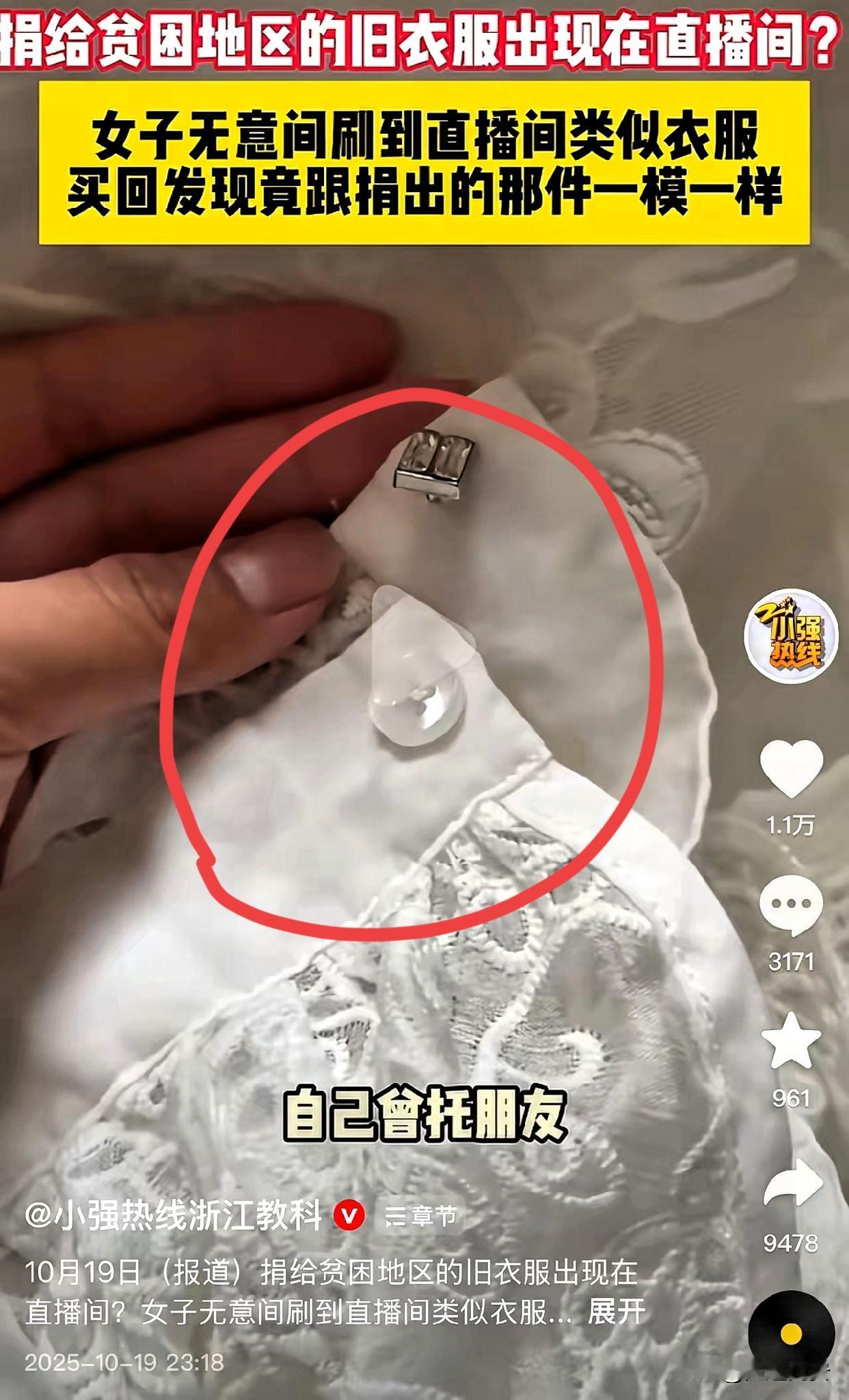 女子88元拍回自己捐的旧衣服,公益捐赠变直播间商品?这事儿让谁听了都心寒。 山东网友捐的55件羽绒服,半年后竟在本地孩子身上出现,还是妈妈399元网购的瑕疵品。 越来越多人说不捐衣服了,因为根本到不了需要的人手里。有人直接剪烂丢掉,有人坚持一对一邮寄。 我们的善意不该成为某些人的生意。