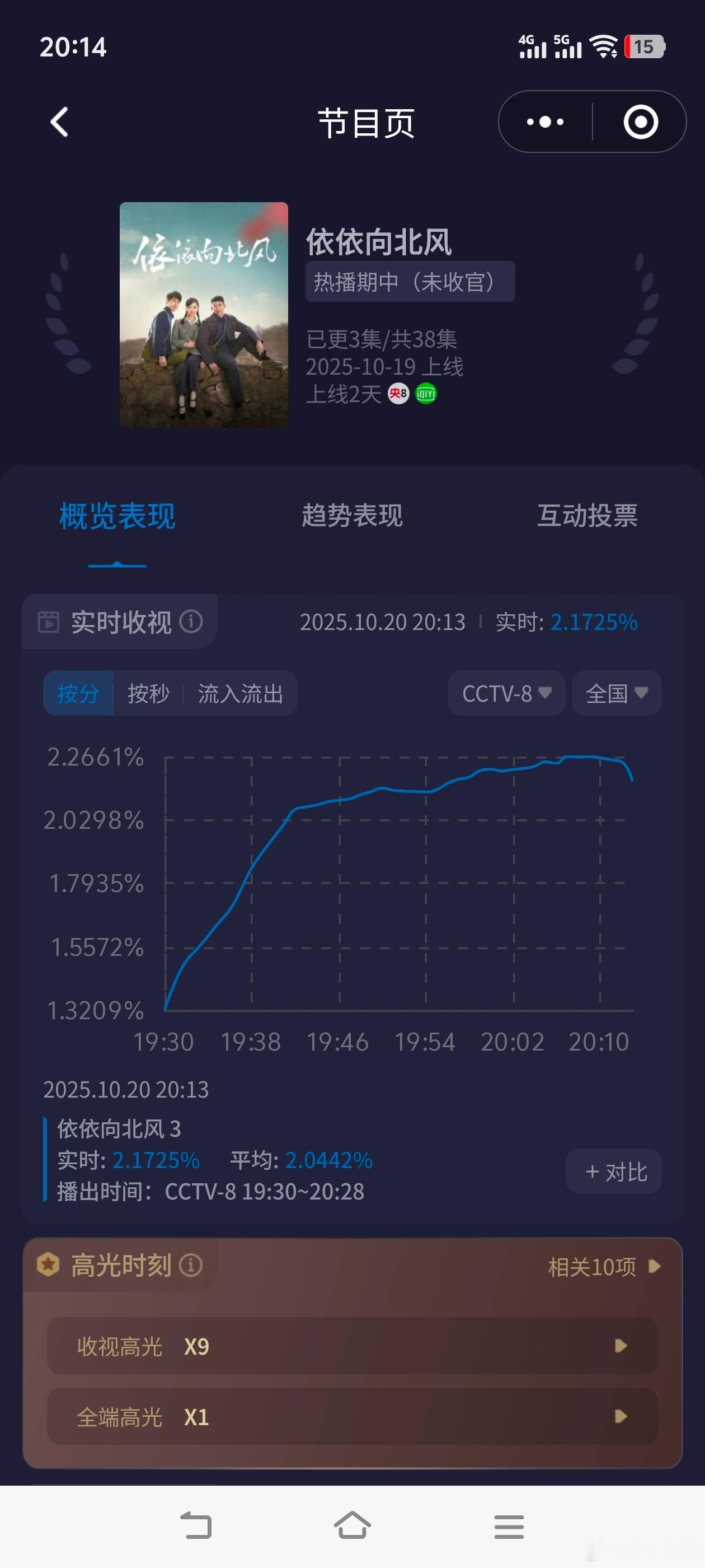 依依向北风 今晚第一集酷云峰值2.26,平均2.00,也不错了!毕竟🐏6挺猛的!展望未来:全剧酷云集均应该能保住2.1+以上,cvb保底1.9以上!再不行也会有1.8!!大家认为呢?