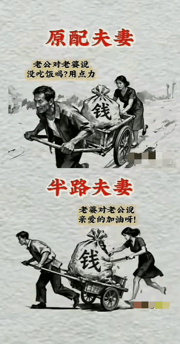 刷到个超有意思的视频!直接把原配和再婚夫妻的日子掰开了给人看,看完真的太有感触了! 原配夫妻是啥样?心往一块凑,劲往一处使,不管是苦日子还是好日子,都能手拉手一起扛。可再婚夫妻呢?好多人心里都揣着小算盘,总想着从对方那儿多捞点,用来搭自己的“生活大厦”,真遇到事儿了,最先想的不是一起扛,而是各跑各的,哪还顾得上对方难不难。 其实根本不是“原配”或“再婚”的标签定了结局,关键是有没有把对方当成真的一家人。要是总想着算计,就算是原配也过不长久;要是真心实意过日子,再婚也能很幸福。你身边有没有原配或再婚过得特别好的例子?他们都是怎么相处的呀?