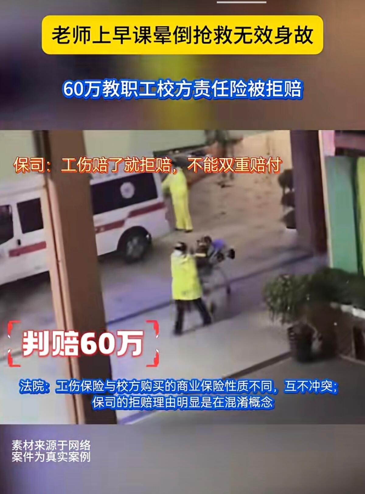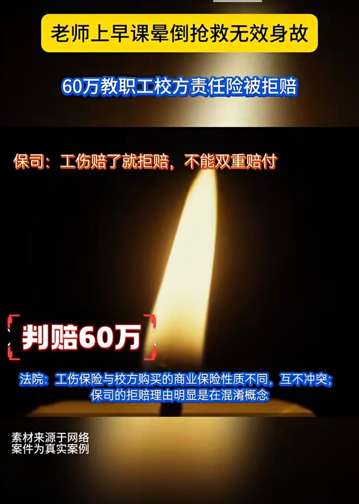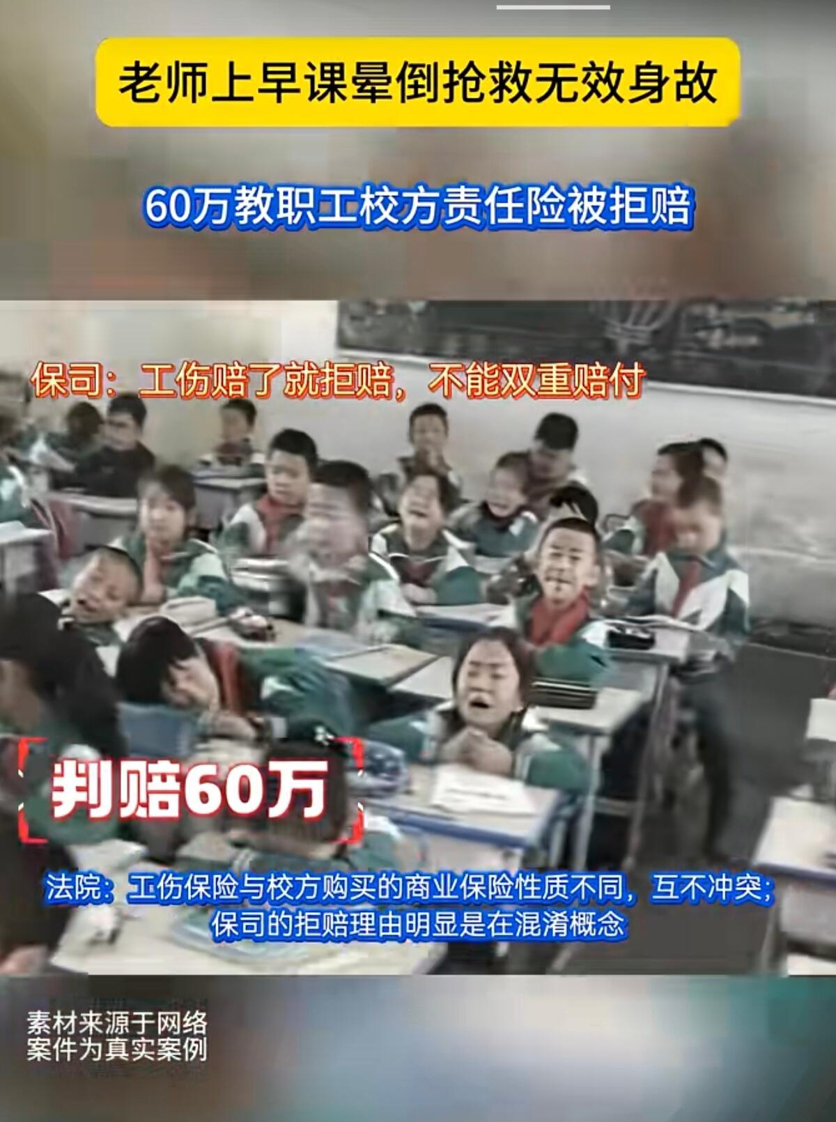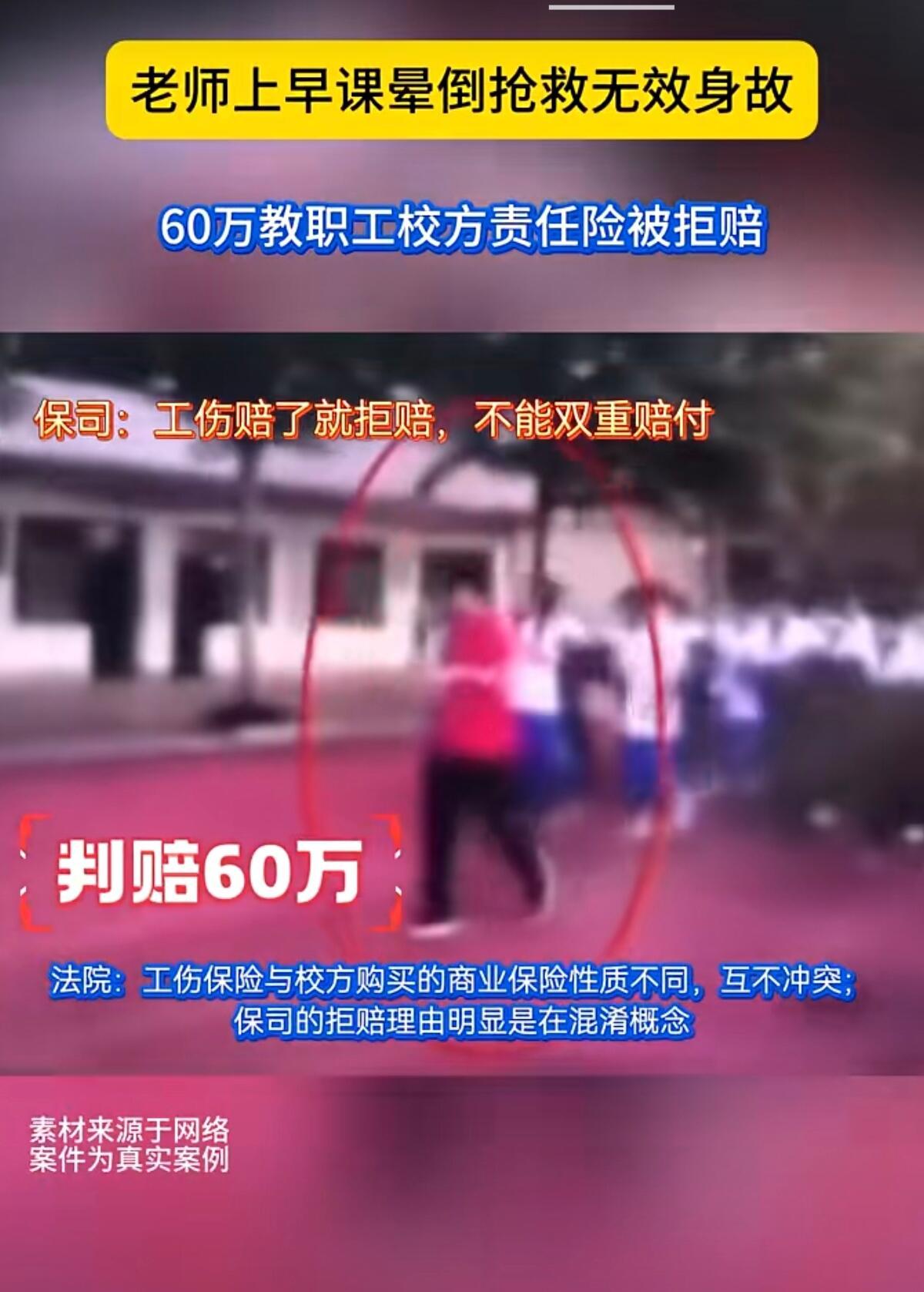 这事儿听着就让人憋屈。河南一位小学老师早上刚带完早操,回办公室拿课本时突然晕倒,再也没能醒过来。学校明明给他买了62万的校方责任险,可保险公司愣是找借口不给赔。 老师被认定为工伤后,家属想着还有份商业保险能兜底,结果保险公司耍起无赖,说什么“已经认定工伤了,我们就不用赔了”。这什么混账逻辑?工伤保险是国家的法定保障,校方责任险是学校自掏腰包买的商业险,俩根本不是一个事儿。 好在法院最后判得明白,直接打脸保险公司:商业保险就得按合同办事,别想偷换概念。最后判赔60万身故金加3万法律费用,算是给这起纠纷画上了句号。 要我说,教师这行业本来压力就大,学校买商业保险不就是想给老师们多份保障吗?保险公司这波操作,不仅寒了老师家属的心,更是砸自己招牌。以后谁还敢买他家保险? 这事也给所有学校提了个醒,买保险时得把条款抠清楚,别等到出事了让老师家属来回折腾。希望老师们在讲台上付出那么多,最后连该有的保障都落不着。