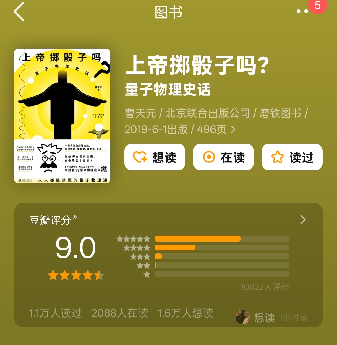 如果对量子物理感兴趣,或投资方面有兴趣,这两本入门挺不错的,深入浅出
