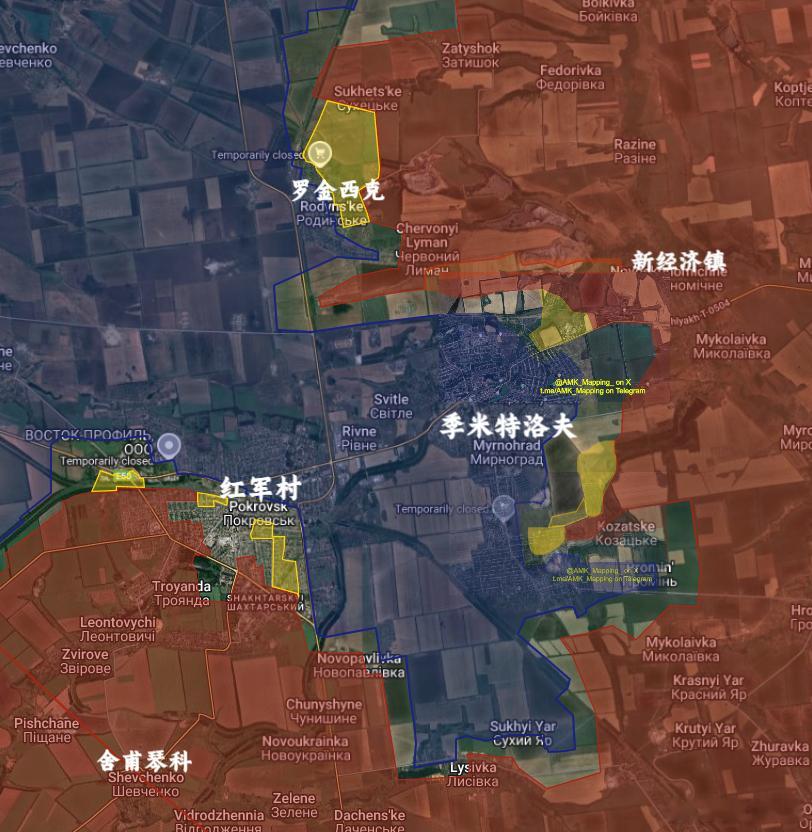 俄军控制了大半的罗金西克,一半的红军村,还在季米特洛夫周边摩擦,双子城要芭比Q了