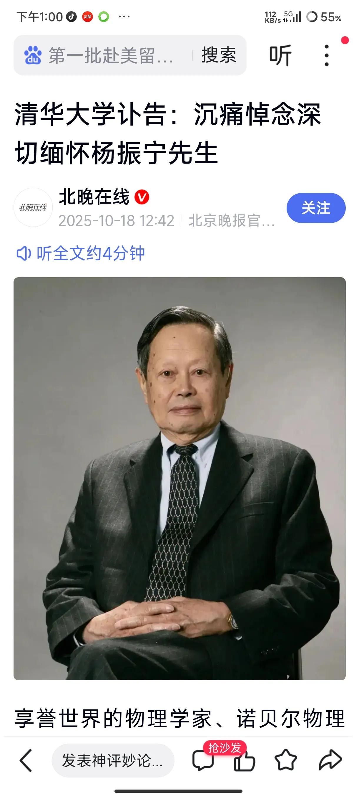 诺奖是他最“小”的成就?听起来夸张,但有道理:他确实得过诺贝尔物理奖(1957年),是因为发现“宇称不守恒”。简单说,就是打破了物理学界一个根深蒂固的“左右对称”观念,证明在微观世界,“左”和“右”不完全一样。这非常了不起! 但是!物理学界普遍认为,他另一个没得诺奖的工作——“杨-米尔斯规范场论”(简称“杨-米尔斯理论”)比得诺奖的那个贡献更重要、更基础、影响更深远!这才是他真正封神的成就。 “杨-米尔斯理论”牛在哪?(尽量说人话):它像一套“万能公式”的架子:你可以把这套理论想象成一个极其强大、极其精密的框架(或者说“模具”)。后来几十年里,物理学家们发现,描述自然界三种最基本的作用力(强相互作用、弱相互作用、电磁相互作用),都能完美地“套”进杨振宁和米尔斯搭建的这个框架里! 现代物理学的基石:基于杨-米尔斯理论建立起来的“标准模型”,是目前人类理解物质最基本组成(夸克、电子等)和它们之间如何相互作用(除了引力)的最成功、最精准的理论。我们所知的微观世界运行规则,很大一部分就建立在这个基础上。 意义有多大?这么说吧,没有杨-米尔斯理论,现代粒子物理学(研究宇宙最小最基本的东西)几乎不可能发展到今天这个高度。它为后来至少好几个诺贝尔奖级别的研究铺平了道路,是真正的“开山祖师爷”级别的贡献。 后半生的宝贵贡献。回国效力,培养人才:他晚年放弃国外优厚条件回到中国定居,在清华大学担任重要职务(如高等研究院名誉院长)。他把世界顶尖的眼光和资源带回来,亲自指导学生搞研究、邀请世界级大师来华交流、为中国的科研发展(特别是理论物理)出谋划策、捐钱捐物。这份心力和推动,对提升中国基础科研水平贡献巨大。 杨振宁先生相当牛,诺奖就是证明。但更牛的是他提出的“杨-米尔斯理论”,这就像是给物理学家们打造了一把打开微观世界最核心秘密的“万能钥匙”。后来那些解释宇宙基本粒子和作用力最重要的大发现,很多都是靠他这把“钥匙”才成功的。没有他这个基础工作,很多诺奖成果可能都无从谈起。再加上他后半生倾尽全力帮助中国科学发展,所以说他的贡献“远超诺奖”,真的一点都不夸张,是国际科学界公认的事实!