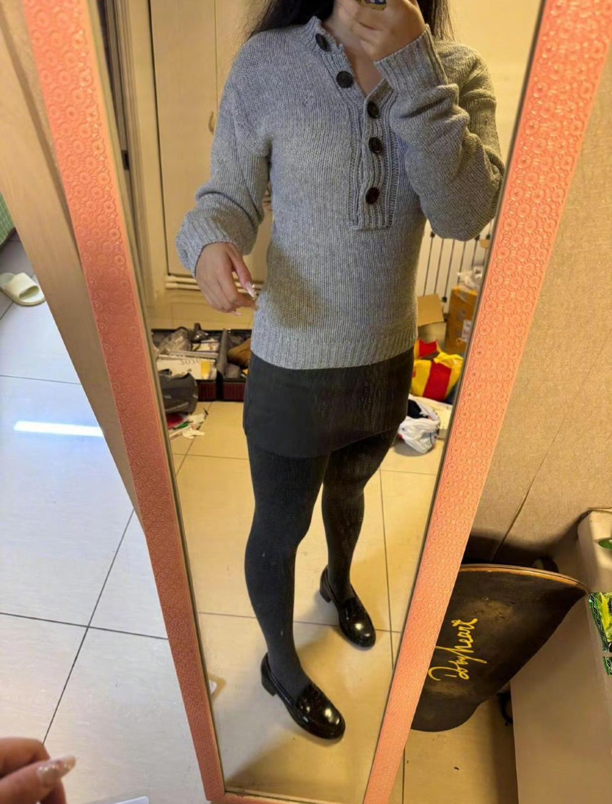 镜中自拍,时尚穿搭,自信满满!