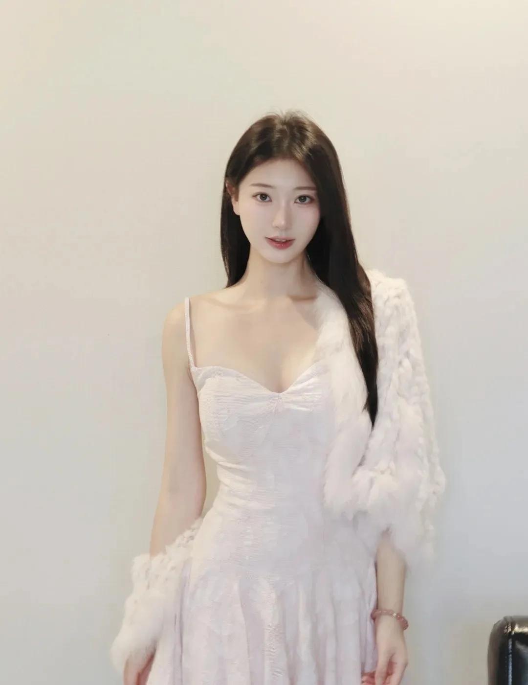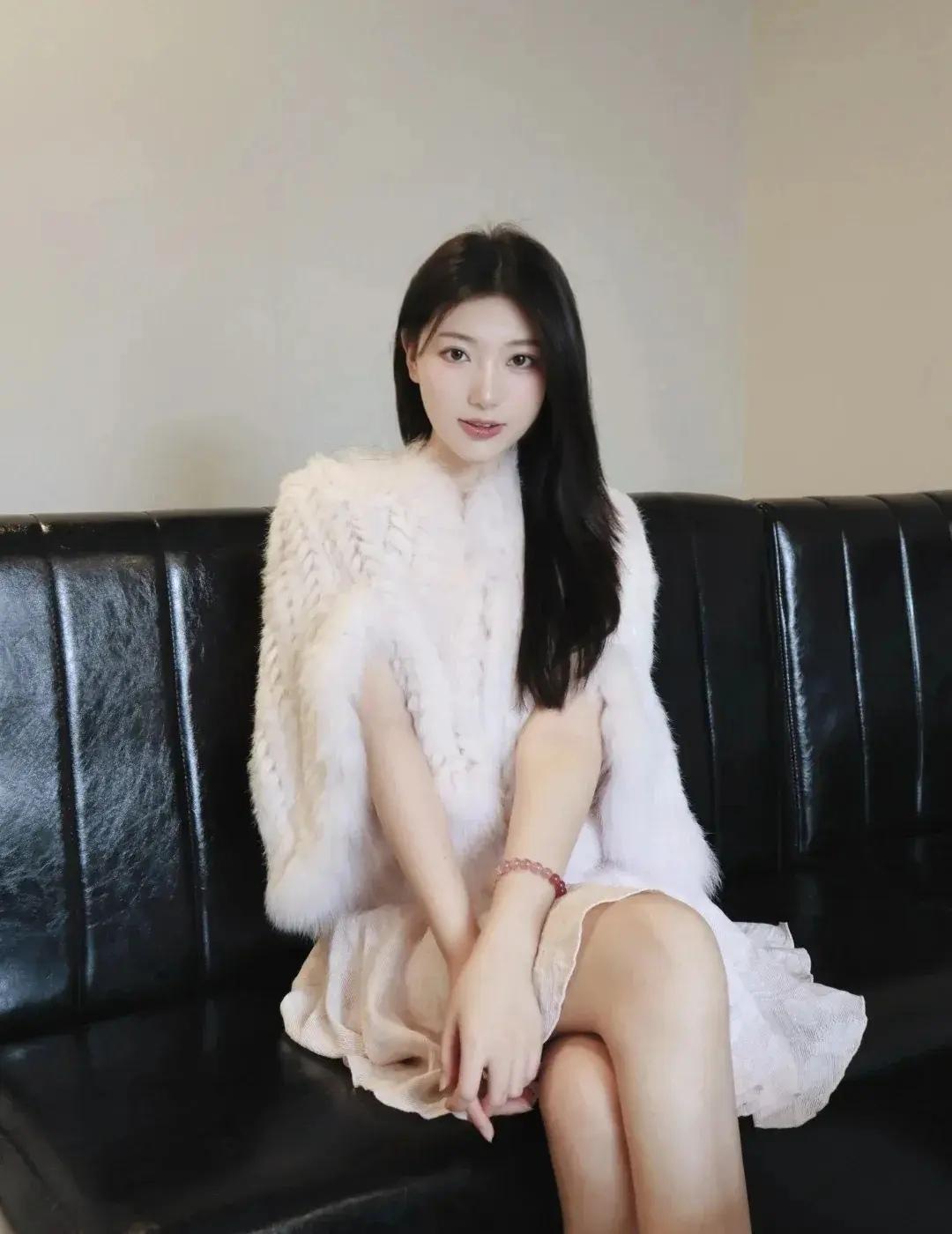 优雅白裙搭配毛绒外套,温柔可人💕高清美女