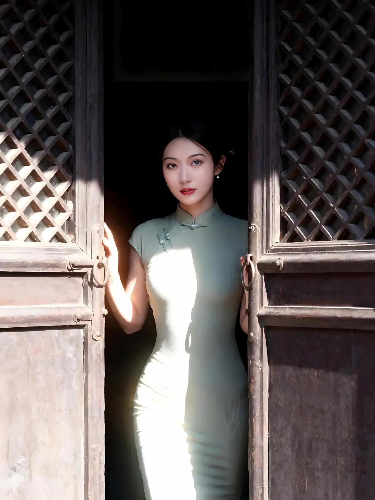 朱门半启佳人立,光影裁出旧梦长~旗袍
