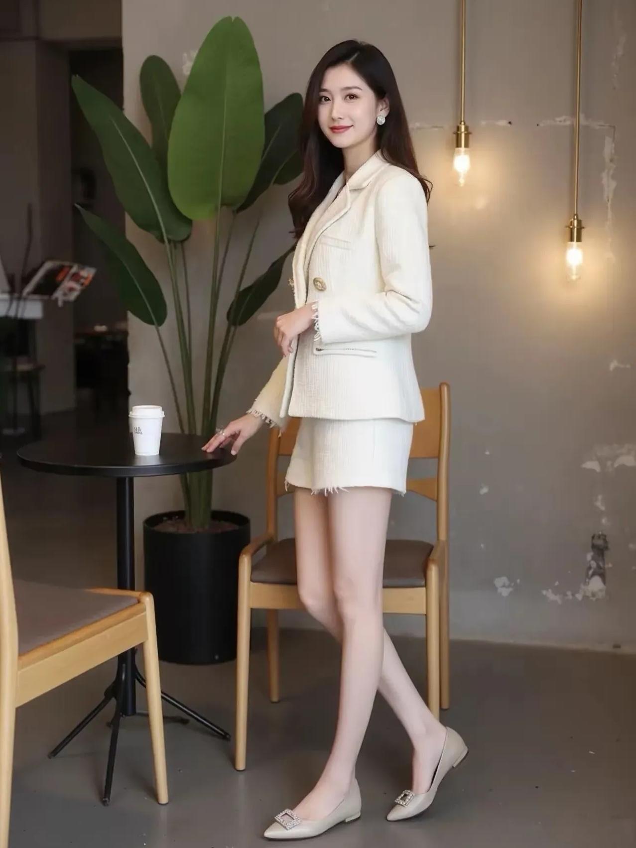 优雅职场风穿搭,白色西装外套搭配高跟鞋,尽显女性魅力!👠💄👩💼大长腿