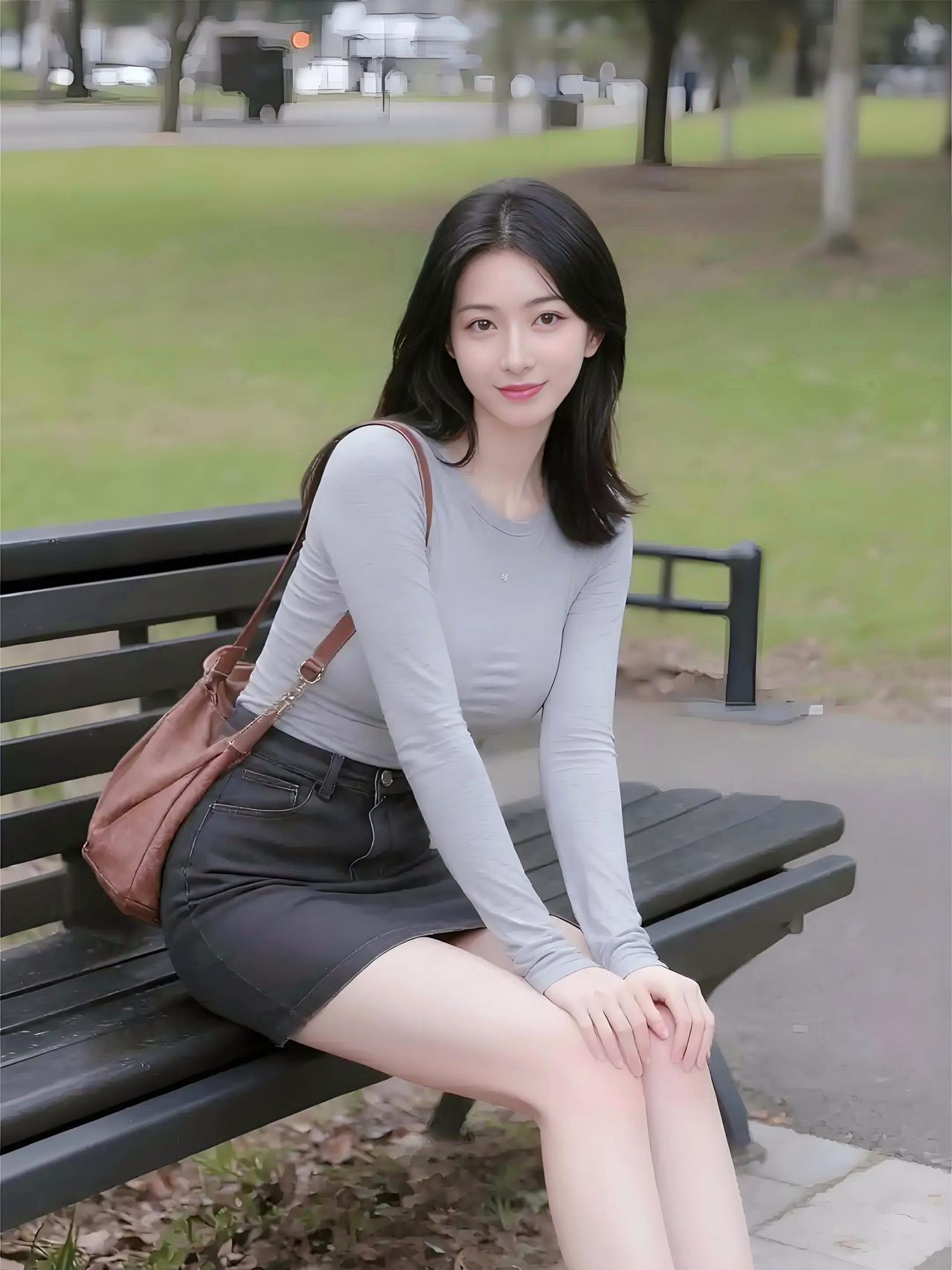 绿树阴中倚长凳,静看红尘似水流好身材性感女神