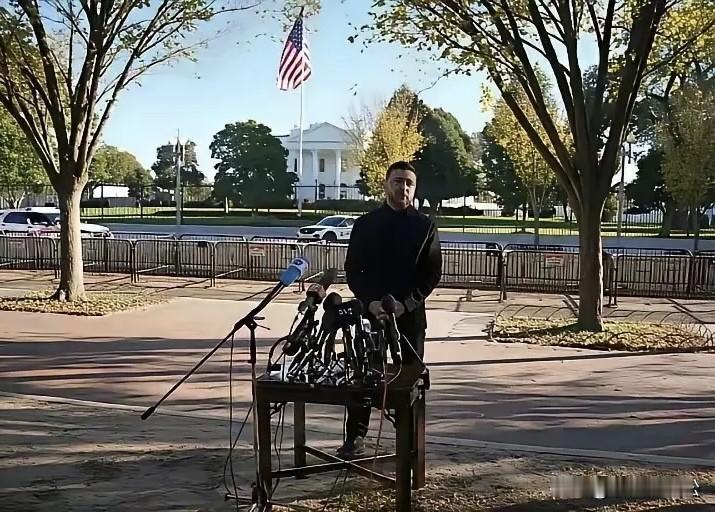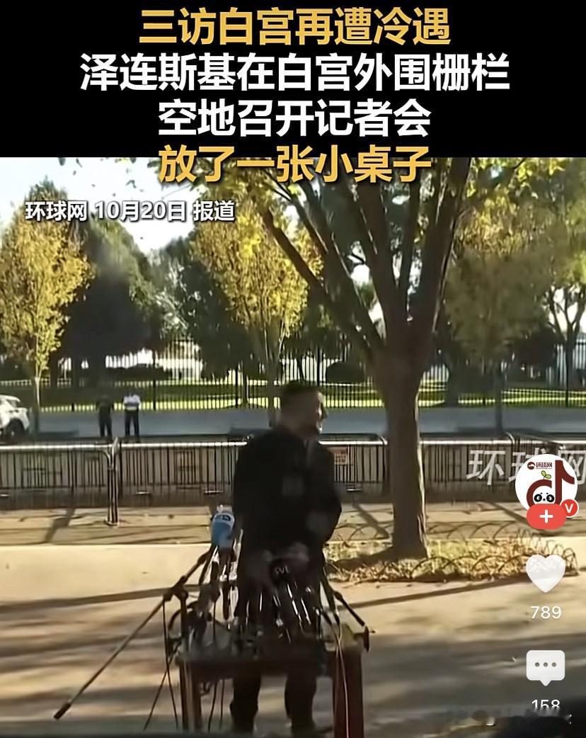 可能是最简陋的总统发布会吧!泽连斯基选择在白宫外的一处荒地向各路媒体记者说明会谈情况,一张小桌子上摆放着各路媒体记者的话筒,看来英国媒体说的没错,他俩吵架了,事后连记者发布会的房间都不给提供,美国做的有点小气了! 泽连斯基可以去驻美大使馆开发布会呀,却故意选择在白宫以外的一处荒地,可能是为了博取同情吧,让外界看看美国是如何对待他的!