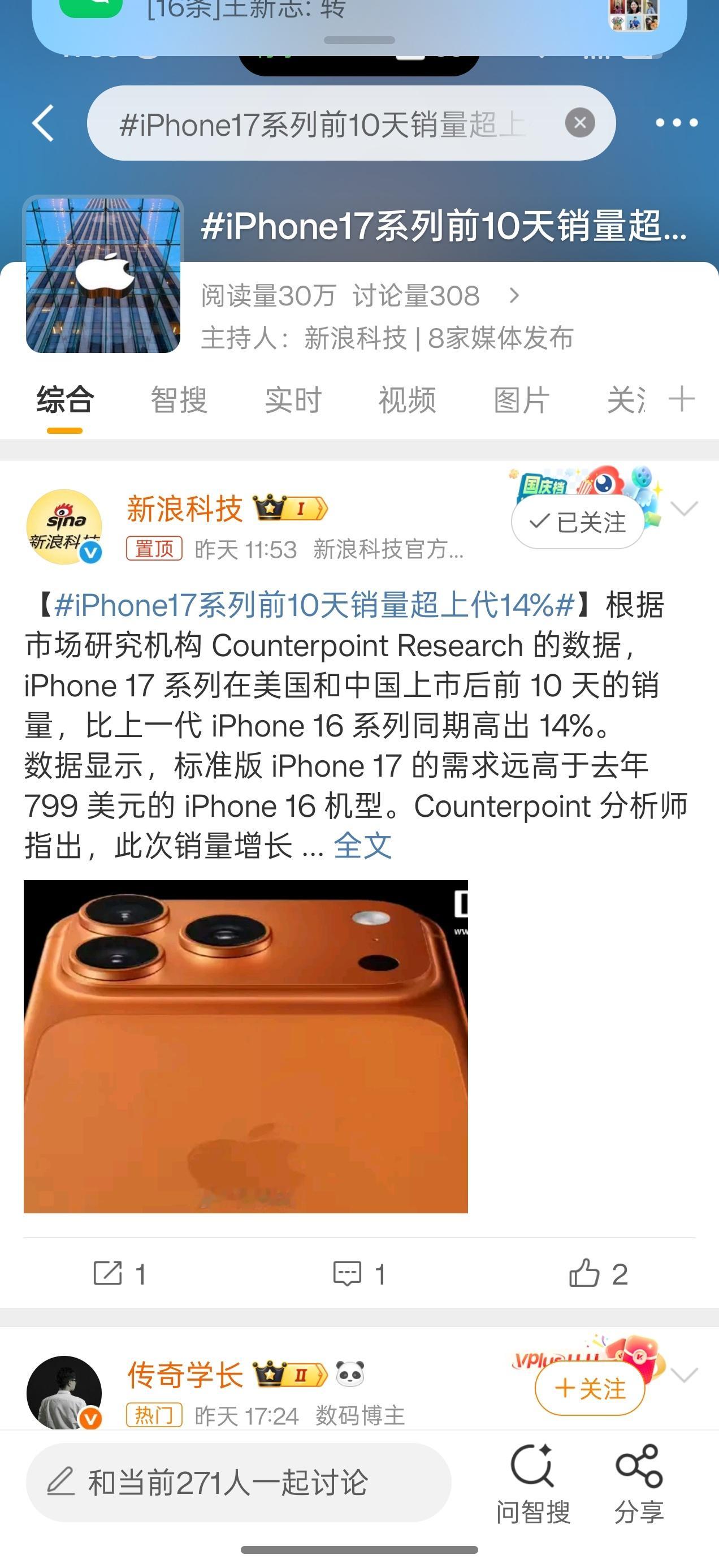 iPhone17系列前10天销量超上代14%才14%嘛?总觉得远远不止啊……[允悲][允悲]