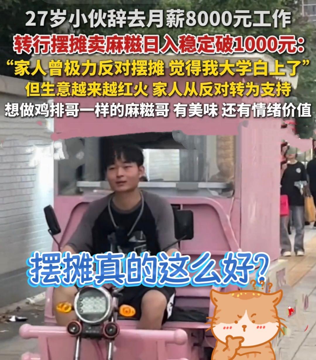 看看,这麻糍摊位也收入很可观吧 日入1000,不需要门面,不需要大本钱! 会不会你也心动呢❓️ 看看有啥门道! 不论做什么生意, 有成功的就有失败的! 首先,这位老板年轻,才27岁 他也模仿鸡排哥提供情绪价值 当然,我觉得也未必是纯模仿, 就是跟客人多互动嘛, 提供点情绪价值! 顾客是上帝,卷的就是服务! 其次,他选址好 在高校周边摆摊,学生多,年轻学生对新鲜事物的接受度高,消费能力强,对有“颜值”有“新鲜感”产品的买单意愿超强! 另外,他善于利用社交媒体,网络营销。 分享自己的摆摊日常、麻糍制作过程,为自己的摊位引流。 最后,技术活! 这摆摊的产品,卫生,技术,口感! 都得非常到位! 你觉得这样的摊位可行性高吗?