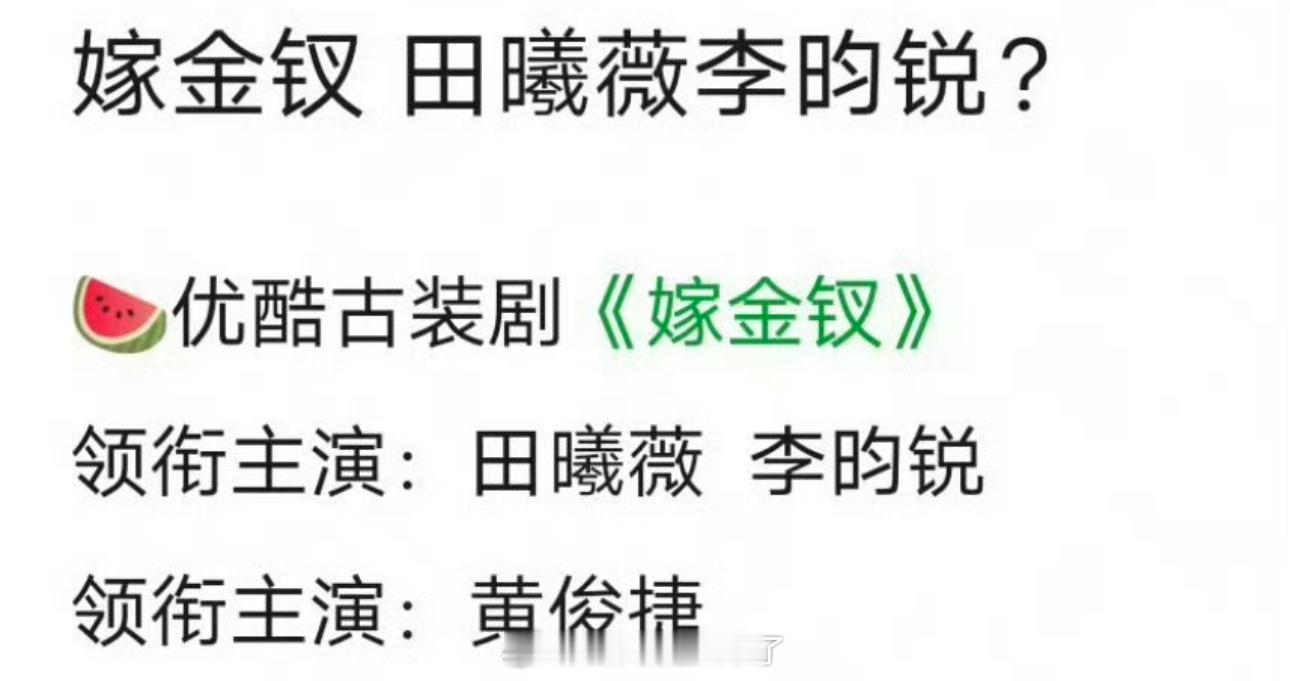 网传古《嫁金钗》定的田曦薇、李昀锐,两人平番,男二是黄俊捷,大家感觉这个阵容怎么