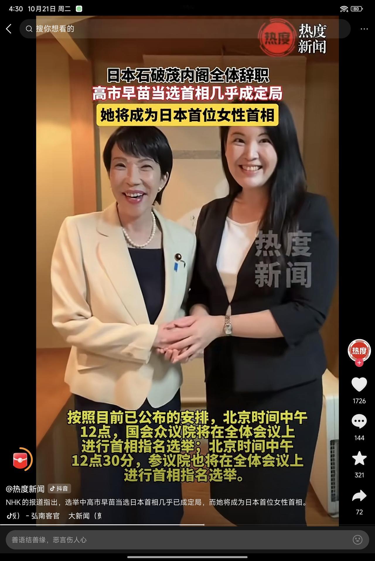 日本首位女首相诞生!右翼代表高市早苗众议院胜选,政治立场与制度规则引热议 10月