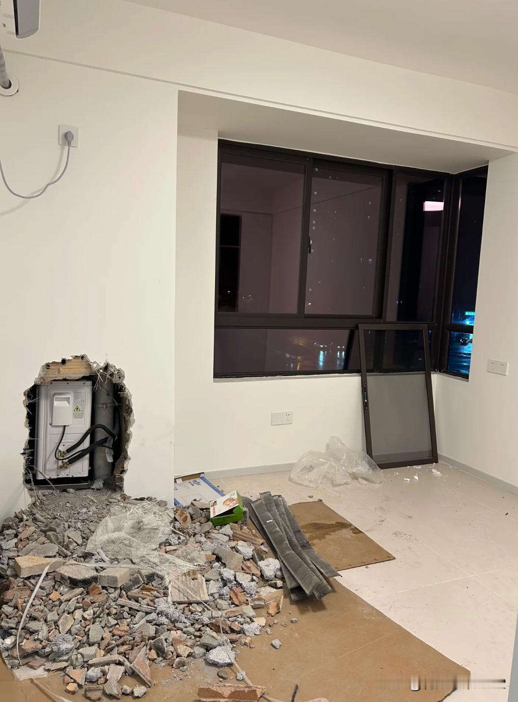 空调机位之前被装修师傅砸了,导致装好房子买来空调,空调的室外机却放不进去。