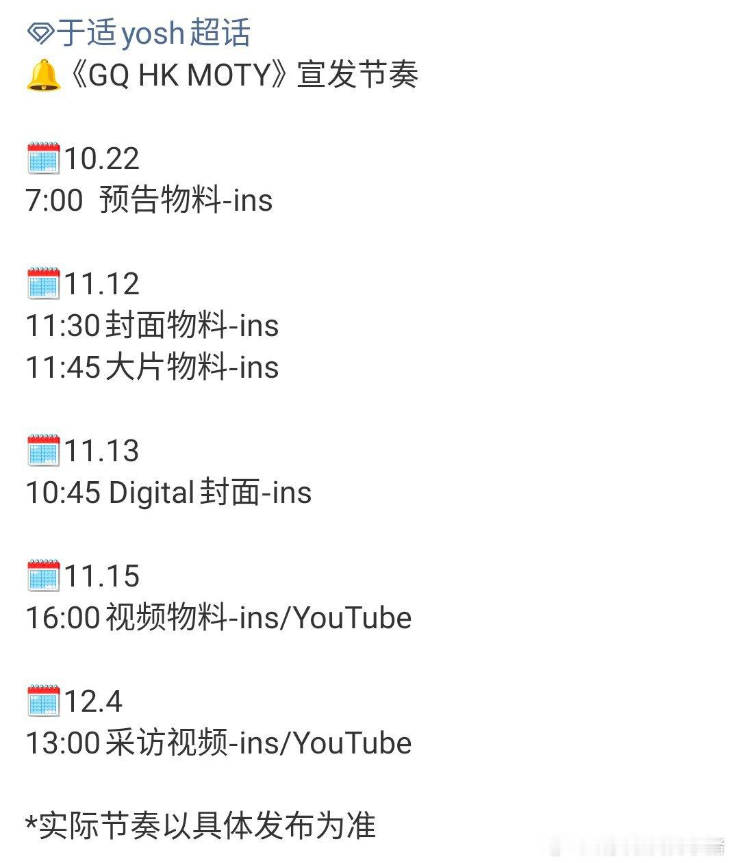于适港版 GQ 宣发节奏,一大早就有新鲜物料啦[yeah][yeah]