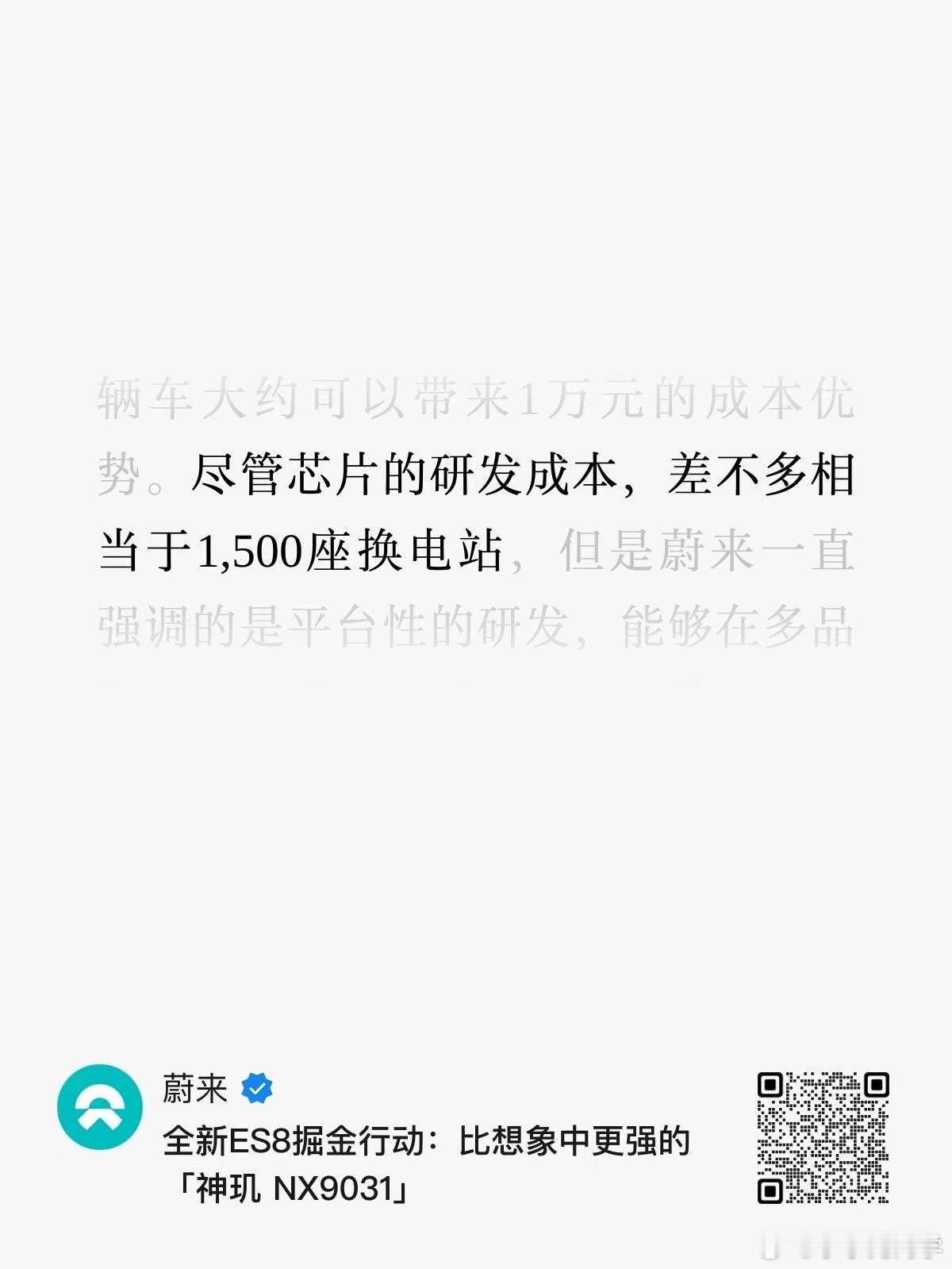 蔚来神玑芯片的研发成本,这次算是第1次公布了。一个换电站就算200万,也是差不多