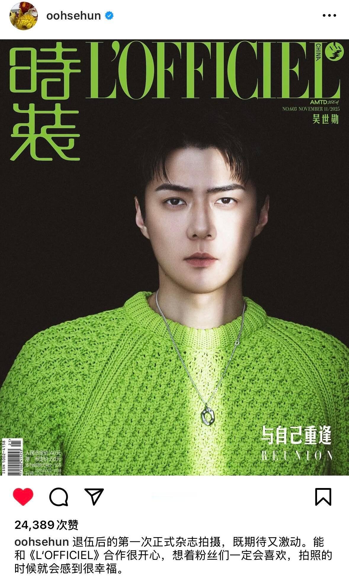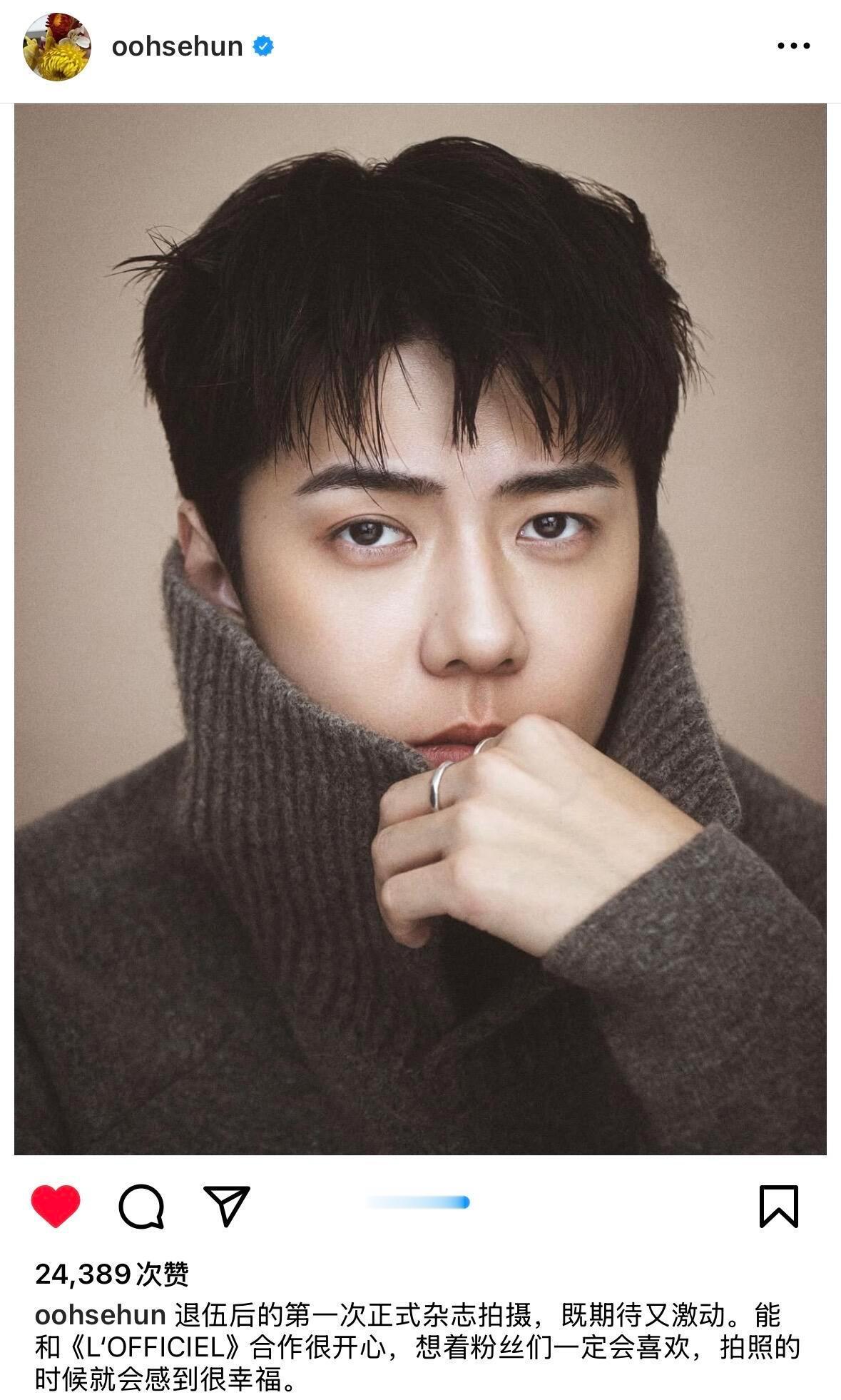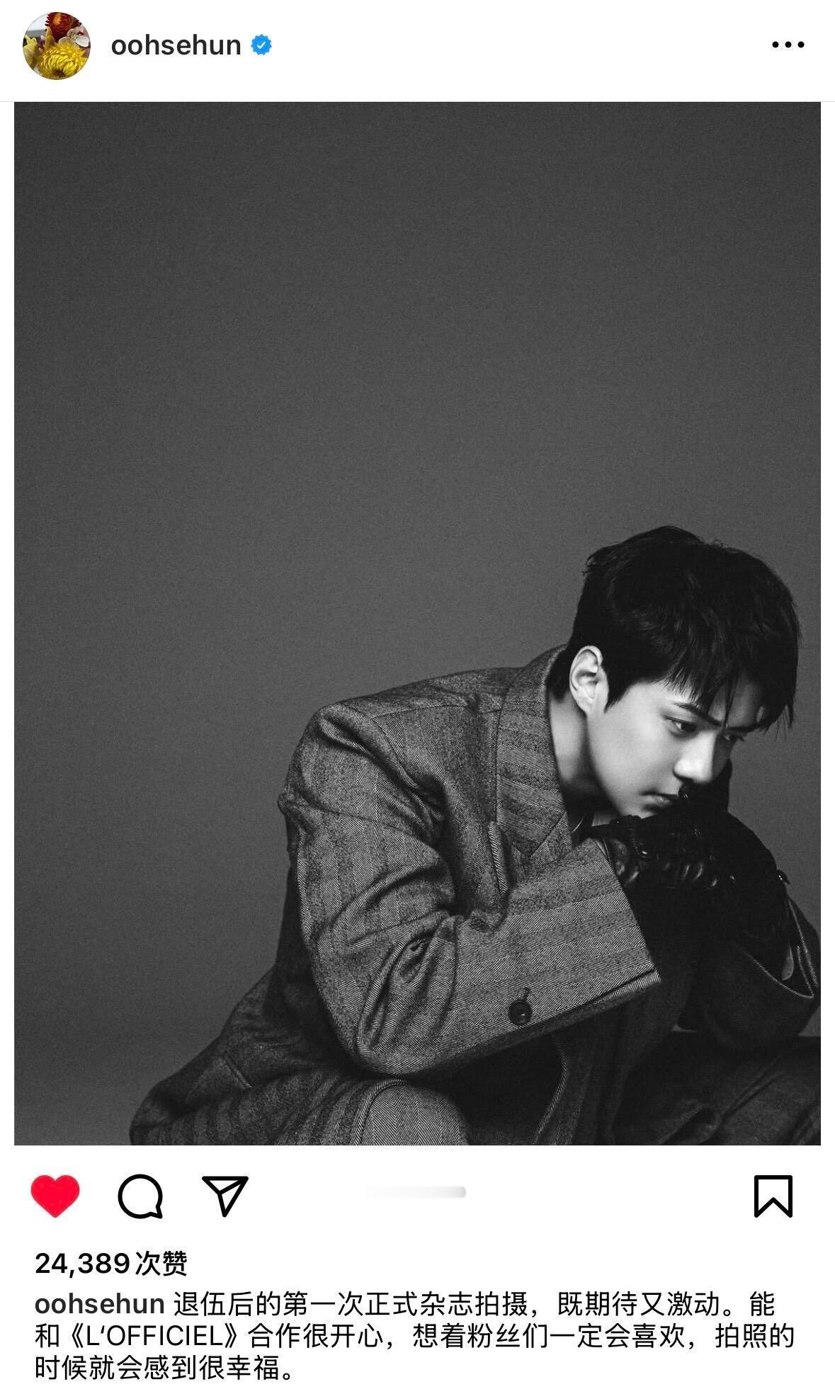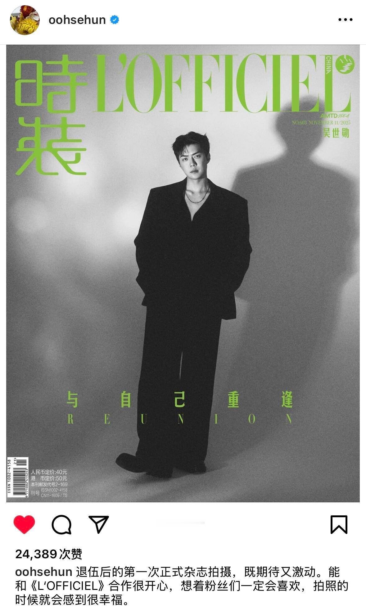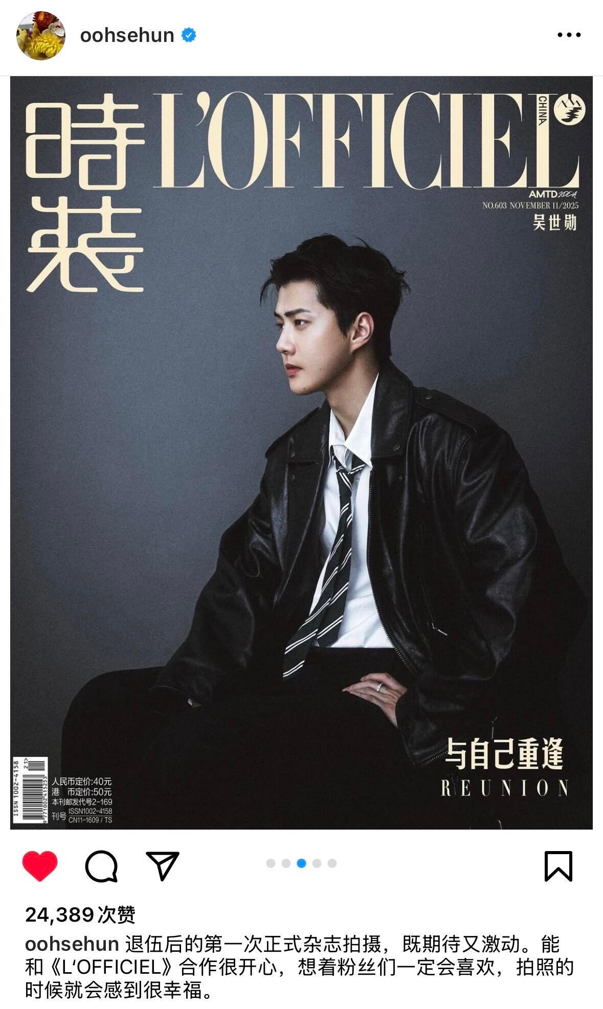 “退伍后的第一次正式杂志拍摄,既期待又激动。能和《L'OFFICIEL》合作很开心,想着粉丝们一定会喜欢,拍照的时候就会感到很幸福。”