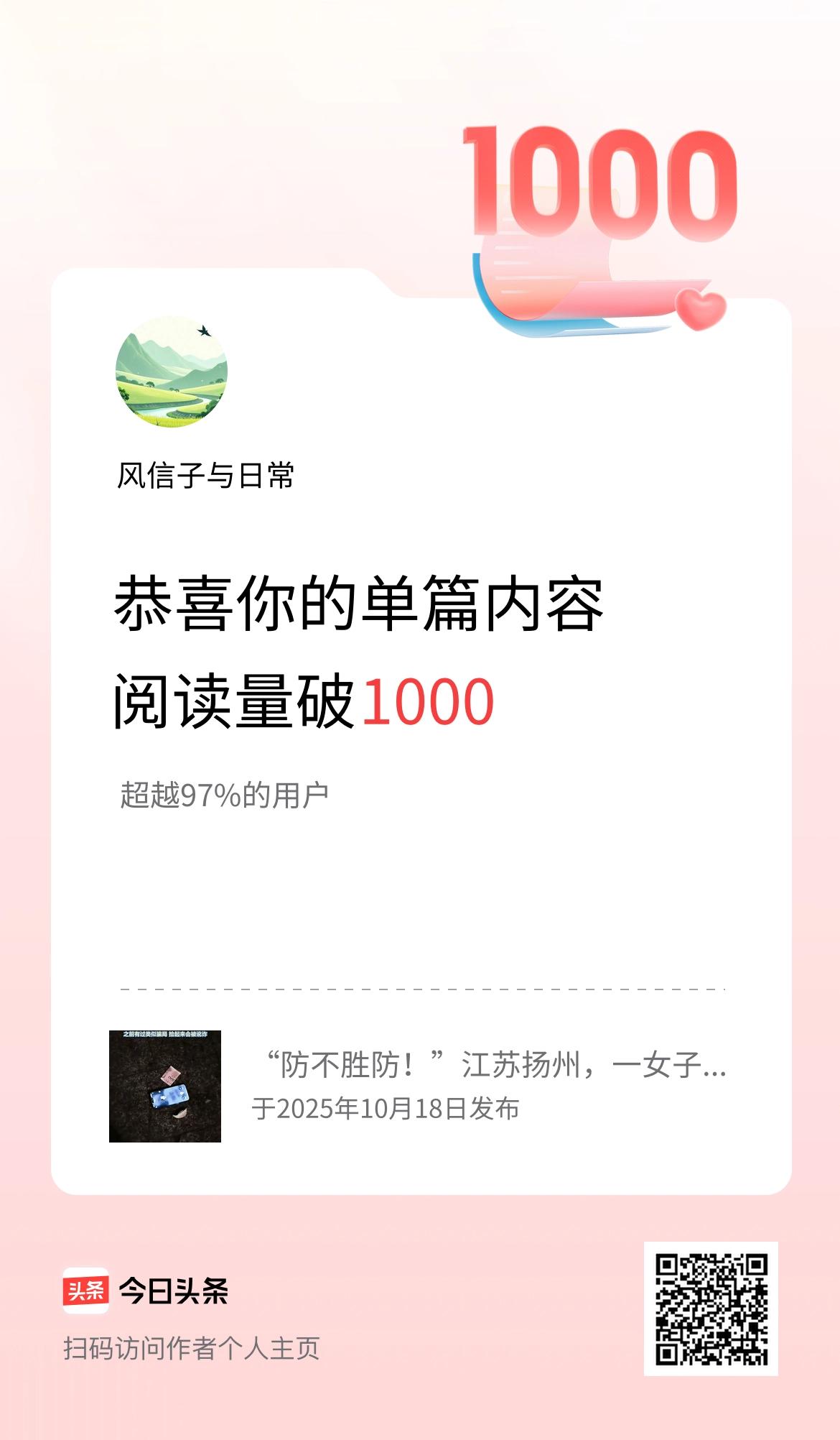 单篇内容获得阅读量破1000啦!