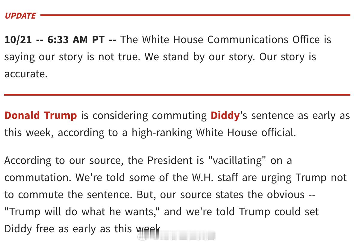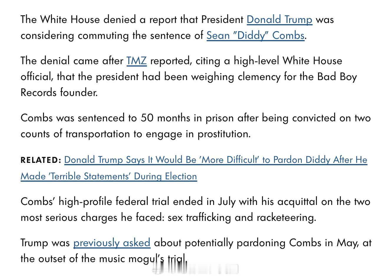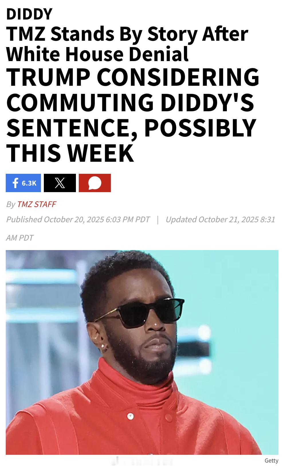1. TMZ的白宫内线说,川普准备特赦Diddy。