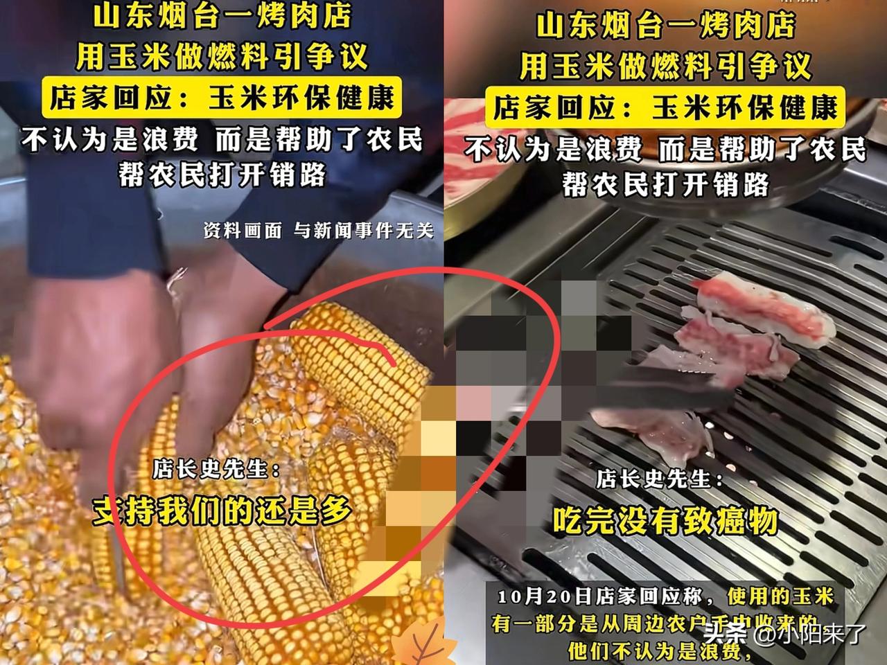 彻底解释不清了!烟台一烤肉店用玉米做燃料,被人发到网上表示其做法是浪费粮食,结果