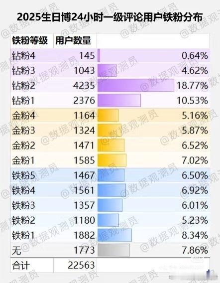1.钻粉占比高达34.57%,核心粉丝群体规模稳定,执行力强,有重度付费意愿;