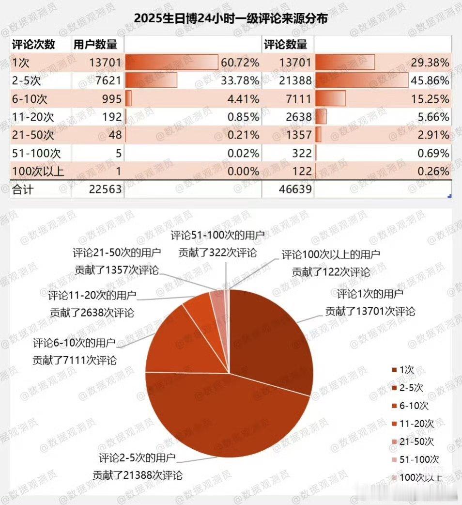 2.34%人贡献46%的评论,高频用户极其少(即俗称的爱刷屏),说明粉圈有组织性的控评,但并不是机器化的做数据,是真人参与,行动理性,有多少人,就做多少事。